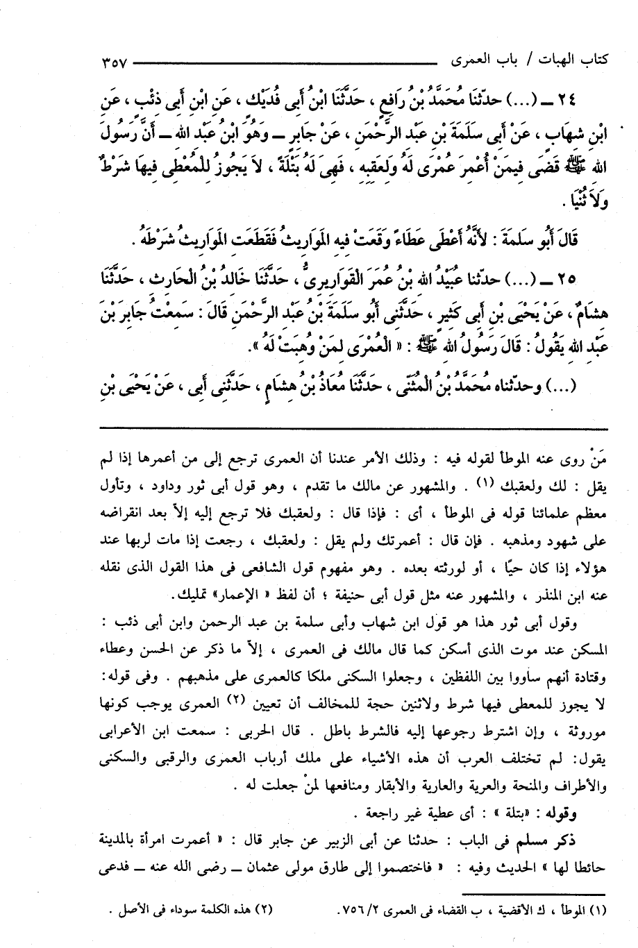(¬1) الموطأ، ك الأقضية، ب القضاء فى العمرى 2/ 756.