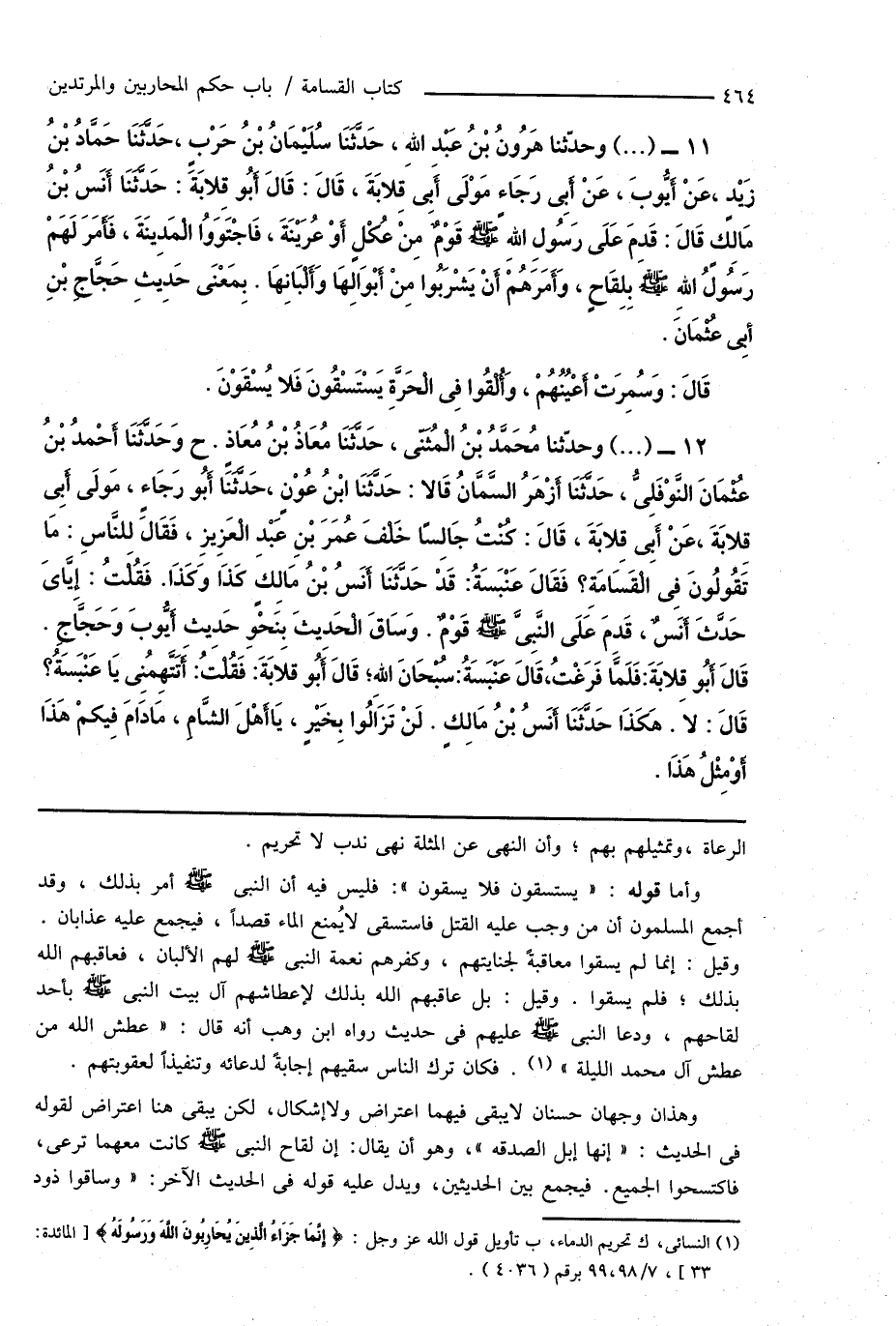 (¬1) النسائى، ك تحريم الدماء، ب تأويل قول الله عز وجل: {إِنَّمَا جَزَاءُ الَّذِين يُحْارِبُونَ اللَّهَ وَرَسُولَهُ} [المائدة: 33]، 7/ 98، 99 برقم (4036).