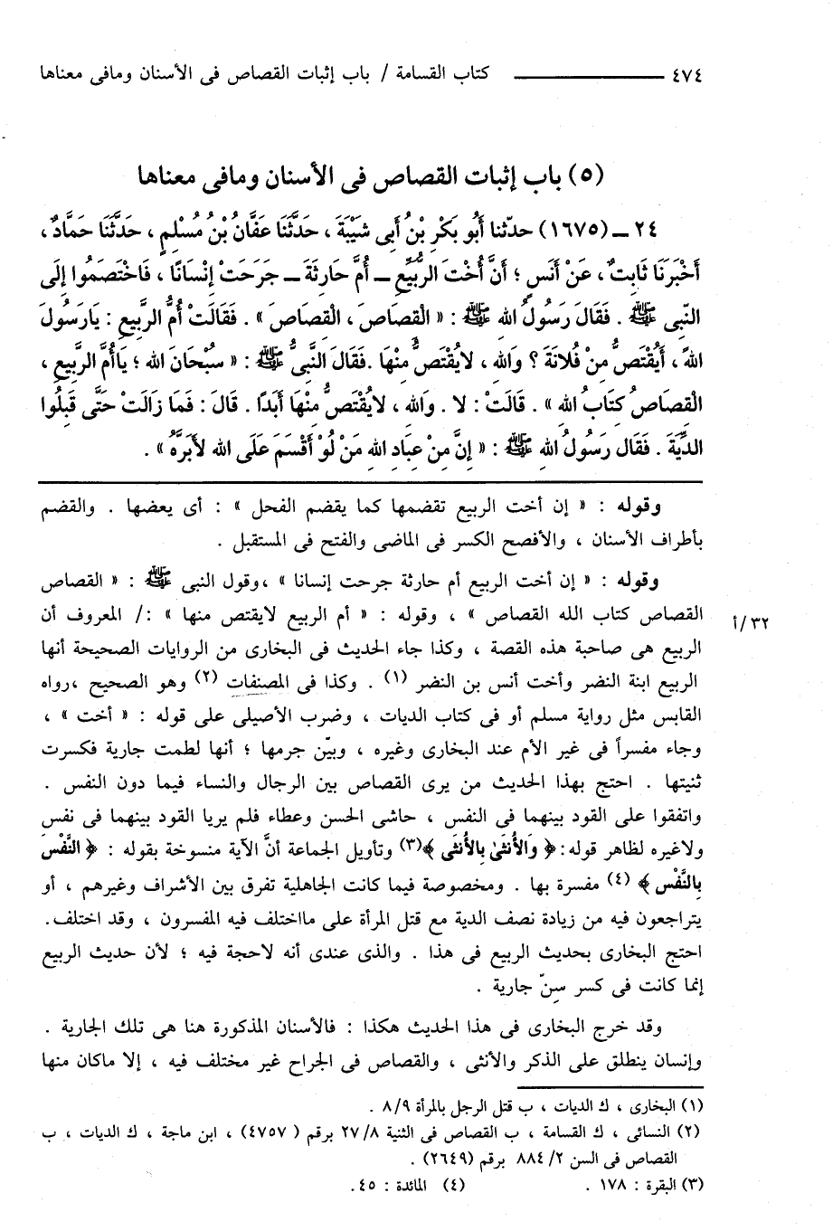 (¬2) النسائى، ك القسامة، ب القصاص فى الثنية 8/ 27 برقم (4757)، ابن ماجة، ك الديات، ب القصاص فى السن 2/ 884 برقم (2649).