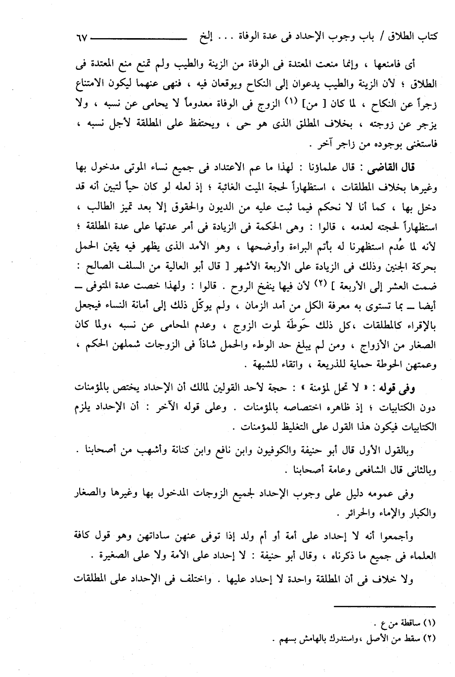 وفى عمومه دليل على وجوب الإحداد لجميع الزوجات المدخول بها وغيرها والصغار والكبار والإماء والحرائر.