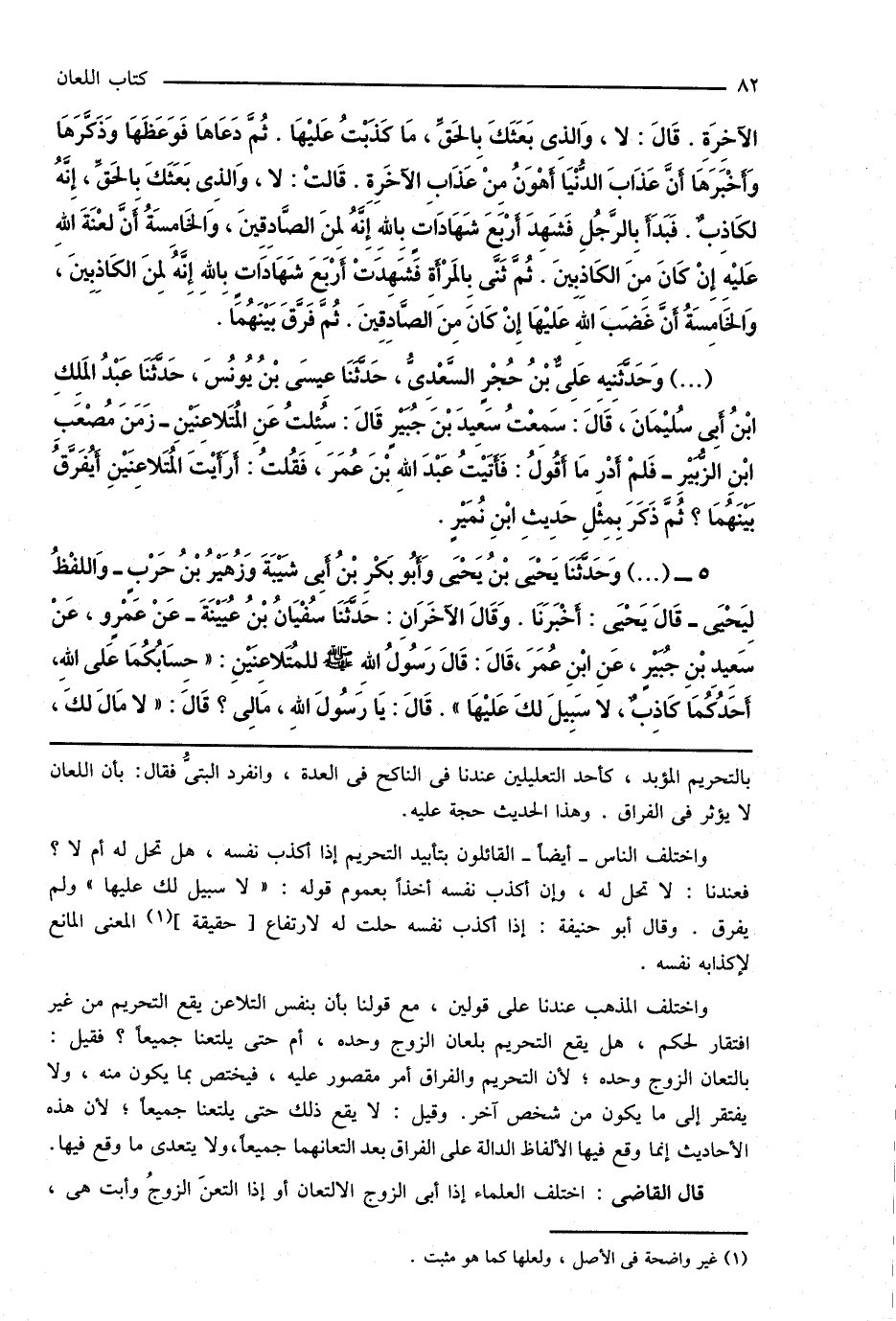 5 - (...) وَحَدَّثَنَا يَحْيَى بْنُ يَحْيَى وَأَبُو بَكْرِ بْنُ أَبِى شَيْبَةَ وَزُهَيْرُ بْنُ حَرْبٍ - وَاللفْظُ لِيَحْيَى - قَالَ يَحْيَى: أَخْبَرَنَا. وَقَالَ الآخَرَانِ: حَدَّثَنَا سُفْيَانُ بْنُ عُيَيْنَةَ - عَنْ عَمْرٍو، عَنْ سَعِيدِ بْنِ جُبَيْرٍ، عَنِ ابْنِ عُمَرَ، قَالَ: قَالَ رَسُولُ اللهِ صَلَّى اللهُ عَلَيْهِ وَسَلَّمَ للمُتَلاعِنَيْنِ: " حِسَابُكُمَا عَلى اللهِ، أَحَدُكُمَا كَاذِبٌ، لا سَبِيلَ لَكَ عَليْهَا ". قَالَ: يَا رَسُولَ اللهِ، مَالِى؟ قَالَ: " لا مَالَ لَكَ،