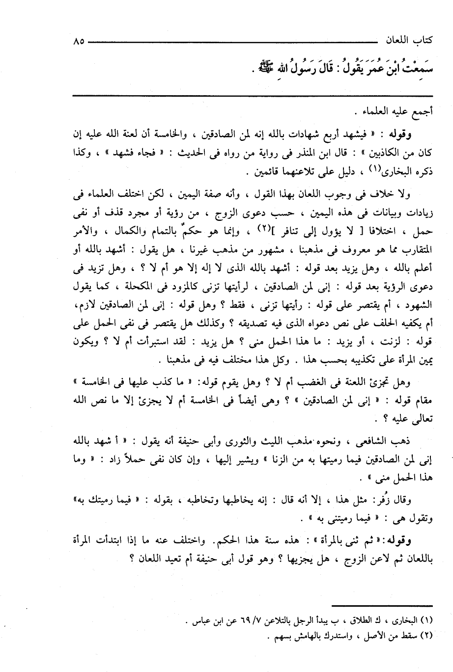 (¬1) البخارى، ك الطلاق، ب يبدأ الرجل بالتلاعن 7/ 69 عن ابن عباس.