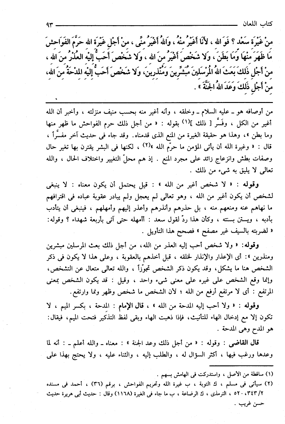 (¬2) سيأتى فى مسلم، ك التوبة، ب غيرة الله وتحريم الفواحش، برقم (36)، أحمد فى مسنده 2/ 343، 520، الترمذى، ك الرضاعة، ب ما جاء فى الغيرة (1168) وقال: حديث أبى هريرة حديث حسن غريب.