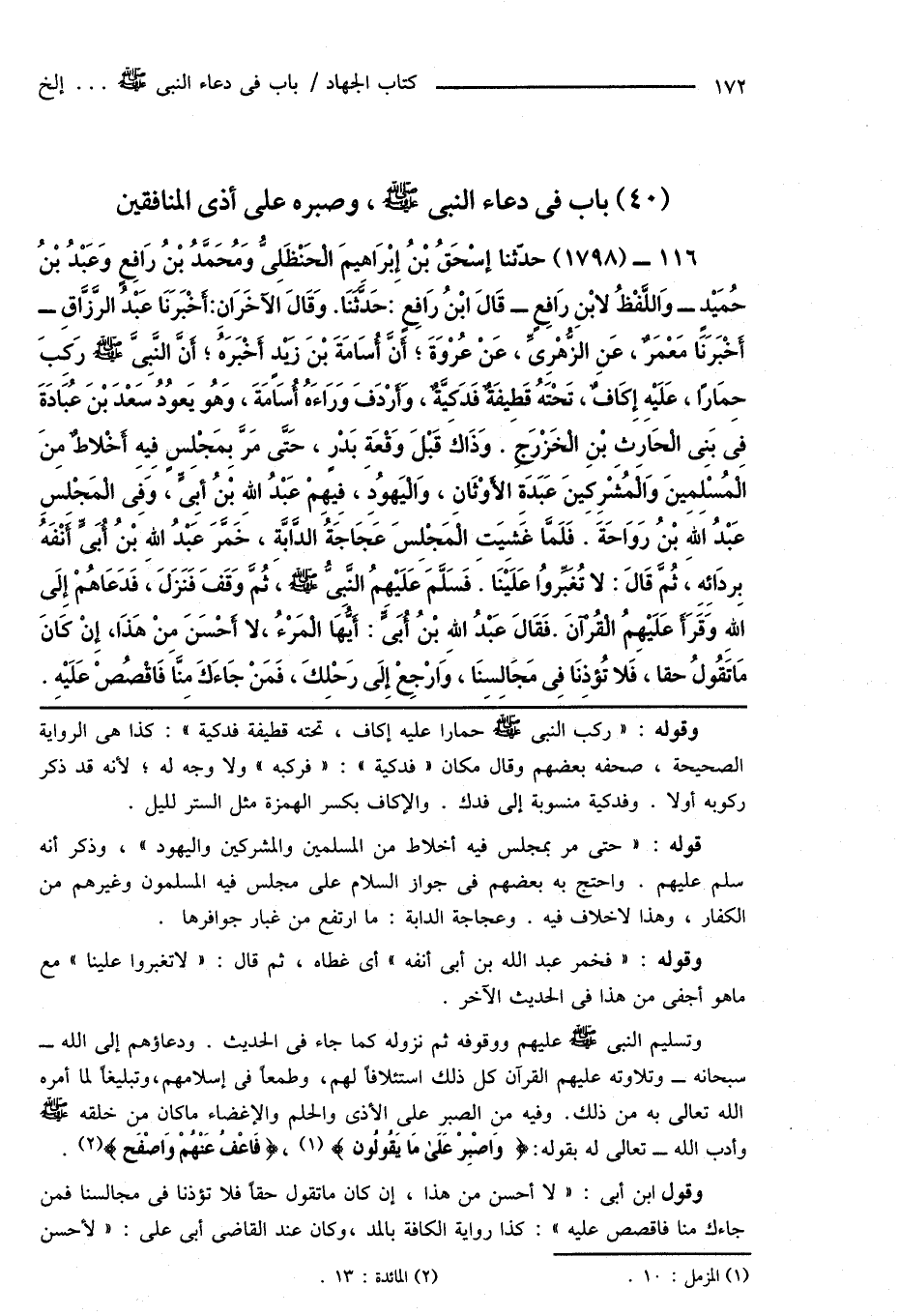 (40) باب فى دعاء النبى صَلَّى اللهُ عَلَيْهِ وَسَلَّمَ، وصبره على أذى المنافقين