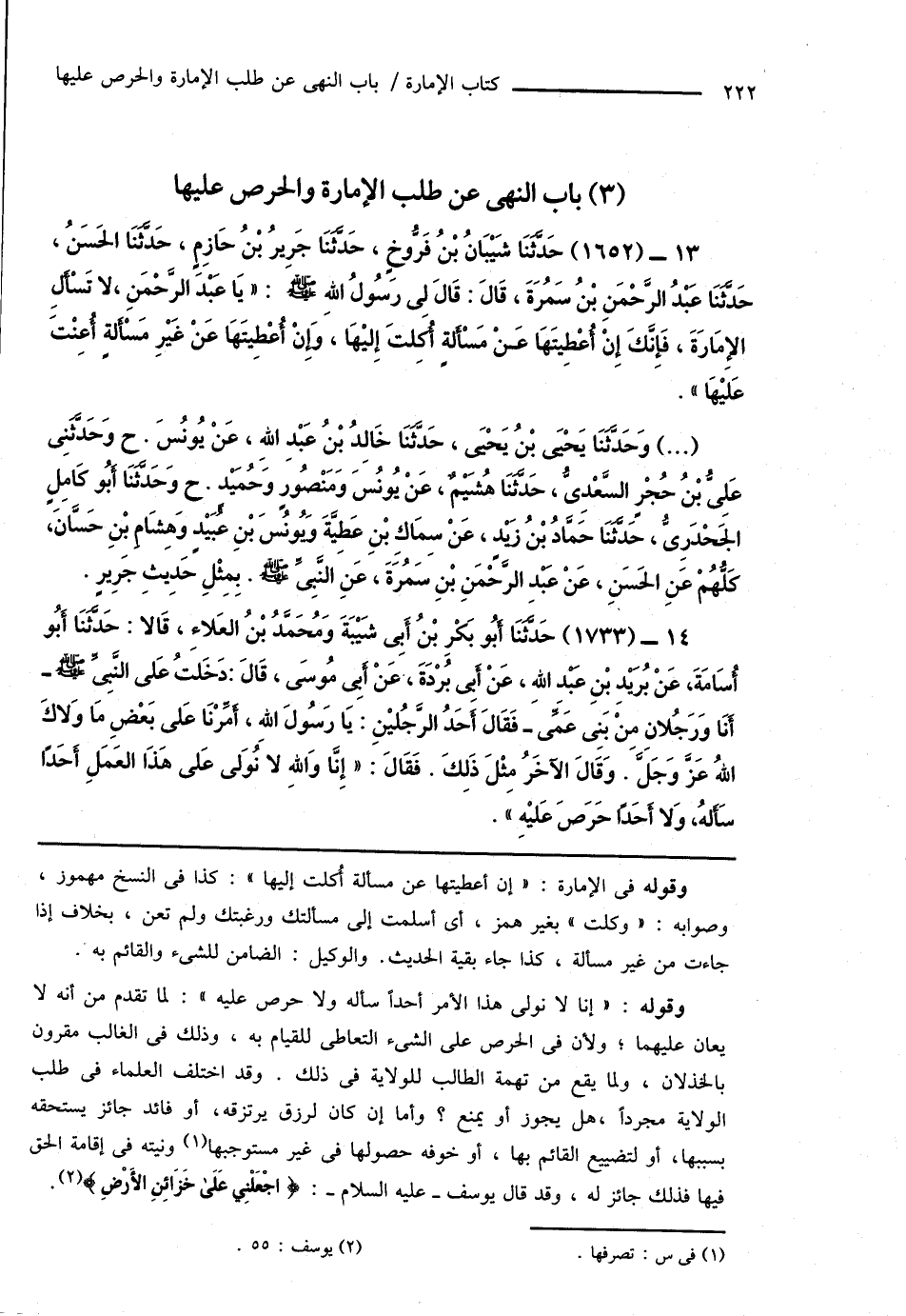 (3) باب النهى عن طلب الإمارة والحرص عليها