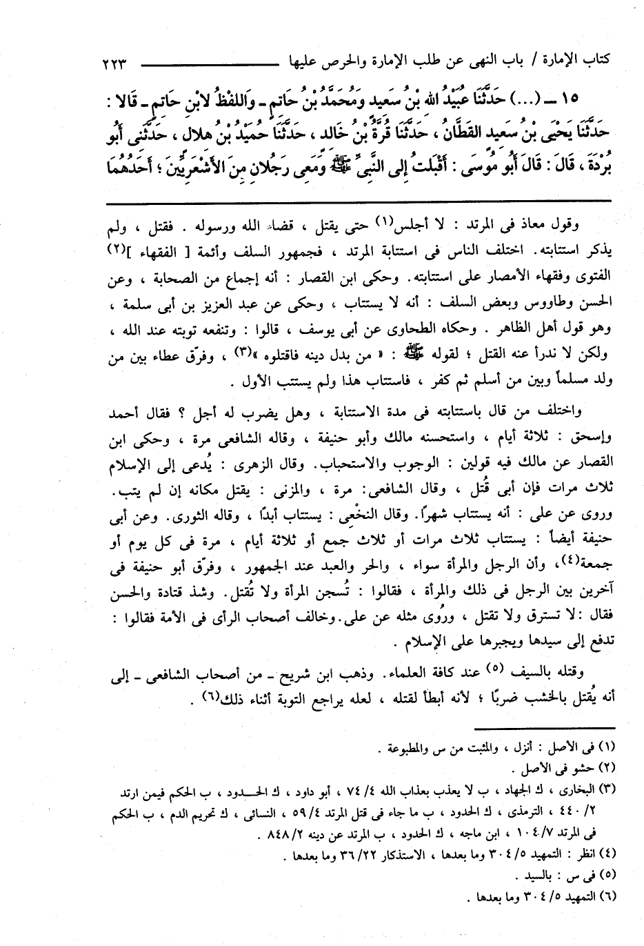 (¬3) البخارى، ك الجهاد، ب لا يعذب بعذاب الله 4/ 74، أبو داود، ك الحدود، ب الحكم فيمن ارتد 2/ 440، الترمذى، ك الحدود، ب ما جاء فى قتل المرتد 4/ 59، النسائى، ك تحريم الدم، ب الحكم فى المرتد 7/ 104، ابن ماجه، ك الحدود، ب المرتد عن دينه 2/ 848.