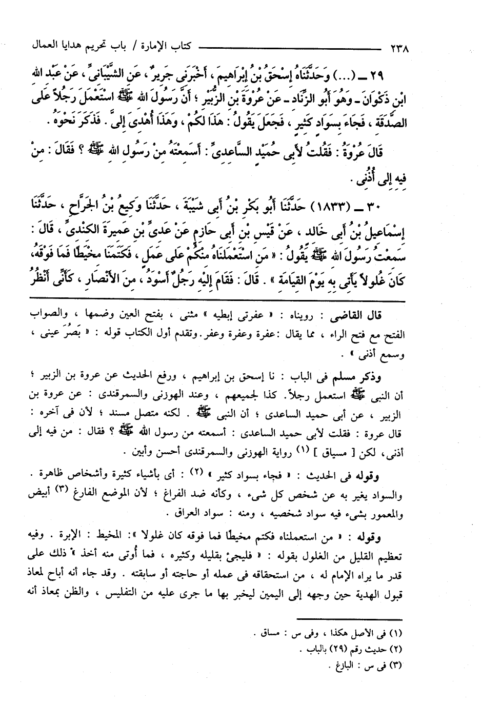 29 - (...) وَحَدَّثَنَاهُ إِسْحَاقُ بْنُ إِبْرَاهِيمَ، أَخْبَرَنِى جَرِيرٌ، عَنِ الشَّيْبَانِىِّ، عَنْ عَبْدِ اللهِ ابْنِ ذَكْوَانَ - وَهُوَ أَبُو الزِّنَادِ - عَنْ عُرْوَةَ بْنِ الزُّبَيْرِ؛ أَنَّ رَسُولَ اللهِ صَلَّى اللهُ عَلَيْهِ وَسَلَّمَ اسْتَعْمَلَ رَجُلاً عَلىَ الصَّدَقَةِ، فَجَاءَ بِسَوَادٍ كَثِيرٍ، فَجَعَلَ يَقُولُ: هَذَا لَكُمْ، وَهَذَا أُهْدِىَ إِلَىَّ. فَذَكَرَ نَحْوَهُ.