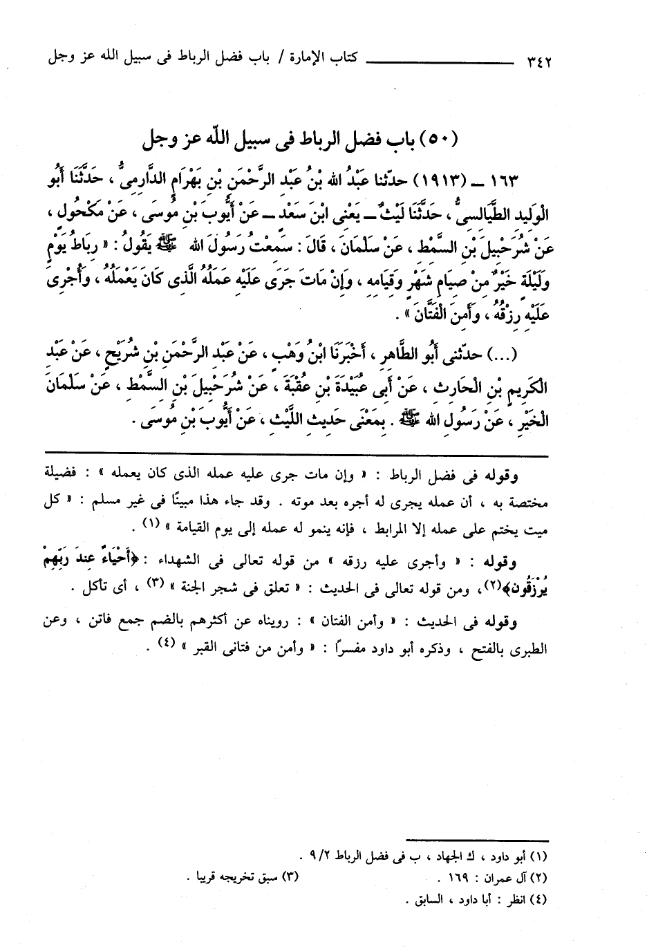(¬1) أبو داود، ك الجهاد، ب فى فضل الرباط 2/ 9.