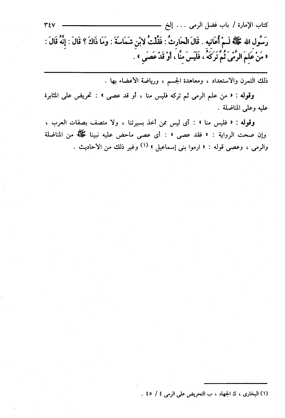 (¬1) البخارى، ك الجهاد، ب التحريض على الرمى 4/ 45.