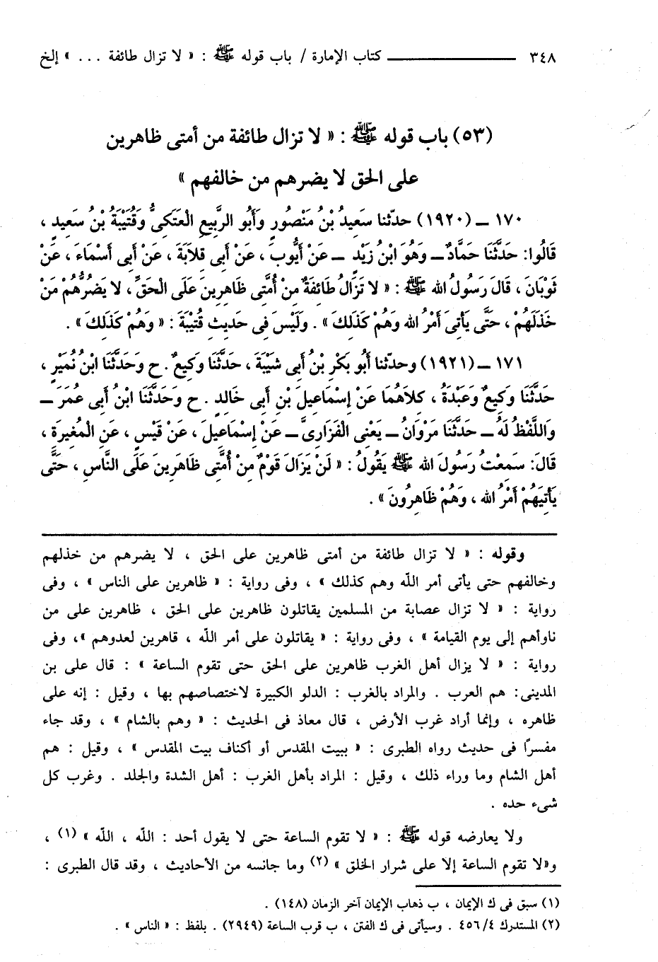 (53) باب قوله صَلَّى اللهُ عَلَيْهِ وَسَلَّمَ: " لا تزال طائفة من أمتى ظاهرين على الحق لا يضرهم من خالفهم "