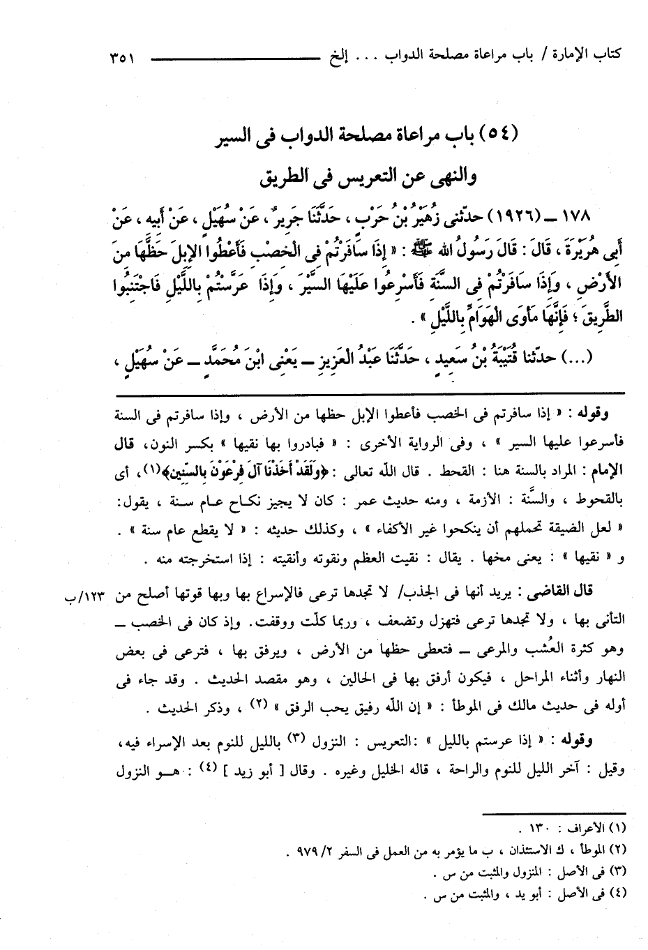 (54) باب مراعاة مصلحة الدواب فى السير والنهى عن التعريس فى الطريق