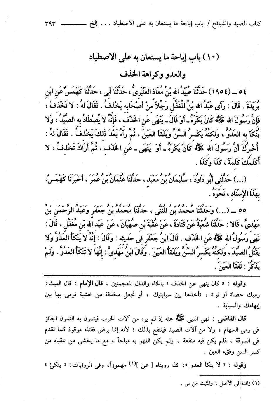 (10) باب إباحة ما يستعان به على الاصطياد والعدو وكراهة الخذف