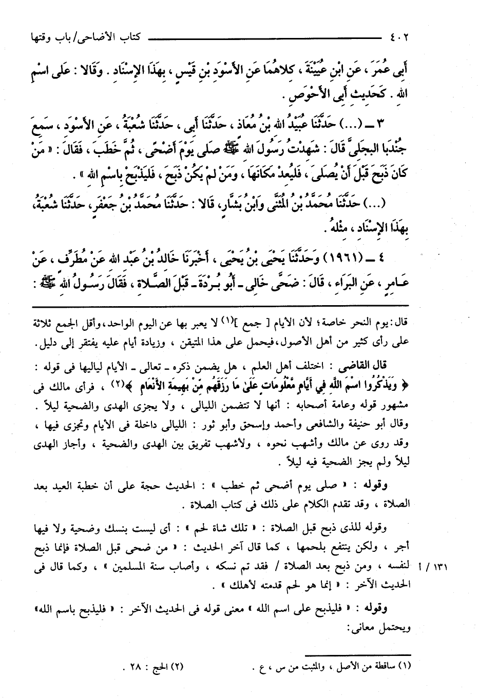 4 - (1961) وَحَدَّثَنَا يَحْيَى بْنُ يَحْيَى، أَخْبَرَنَا خَالِدُ بْنُ عَبْدِ اللهِ عَنْ مُطَرِّفٍ، عَنْ عَامِرٍ، عَنِ الْبَرَاءِ، قَالَ: ضَحَّى خَالِى - أَبُو بُرْدَةَ - قَبْلَ الصَّلاةِ، فَقَالَ رَسُولُ اللهِ صَلَّى اللهُ عَلَيْهِ وَسَلَّمَ: