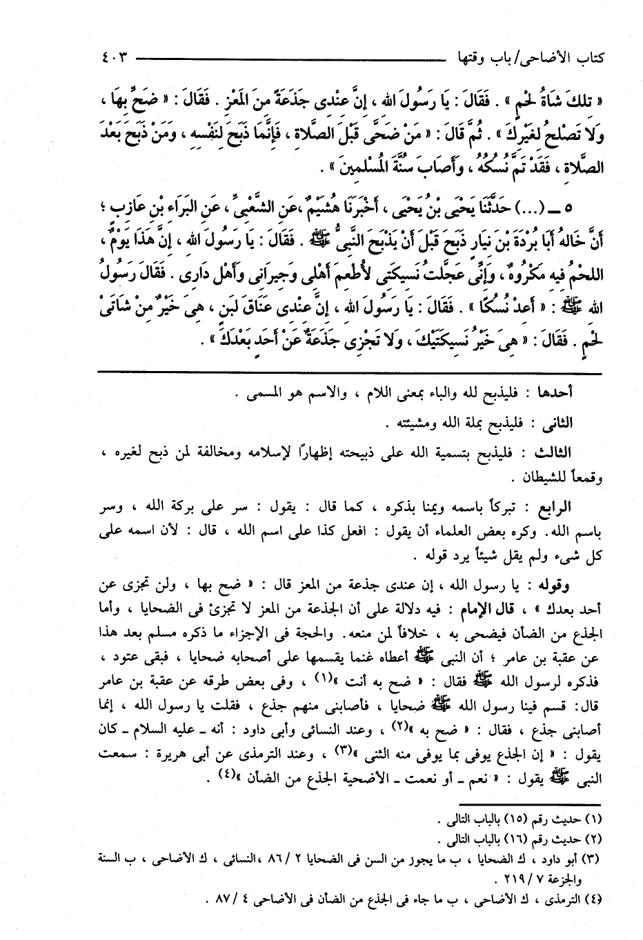 (¬3) أبو داود، ك الضحايا، ب ما يجوز من السن فى الضحايا 2/ 86، النسائى، ك الأضاحى، ب السنة والجذعة 7/ 219.