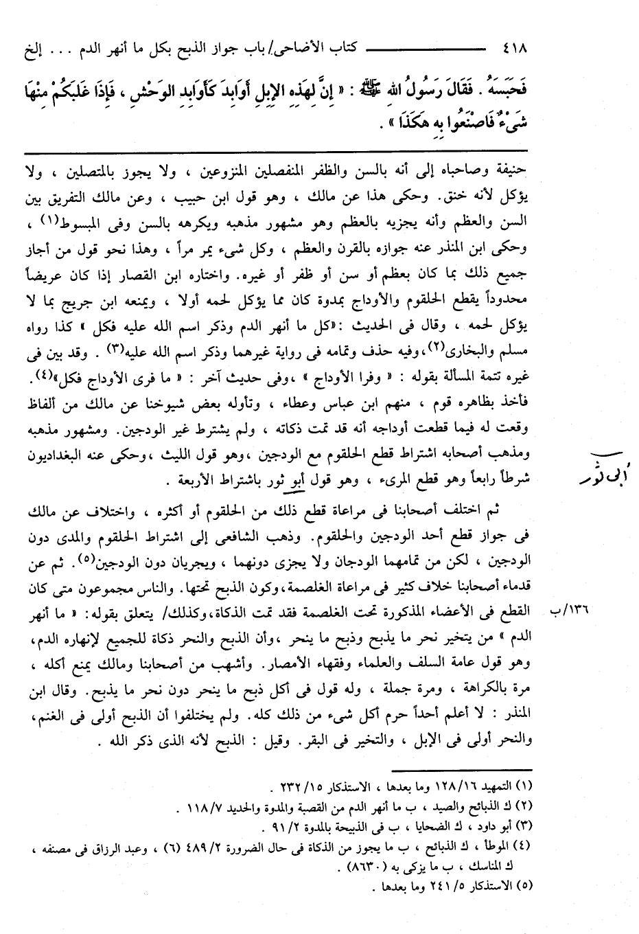(¬2) ك الذبائح والصيد، ب ما أنهر الدم من القصبة والمدوة والحديد 7/ 118.