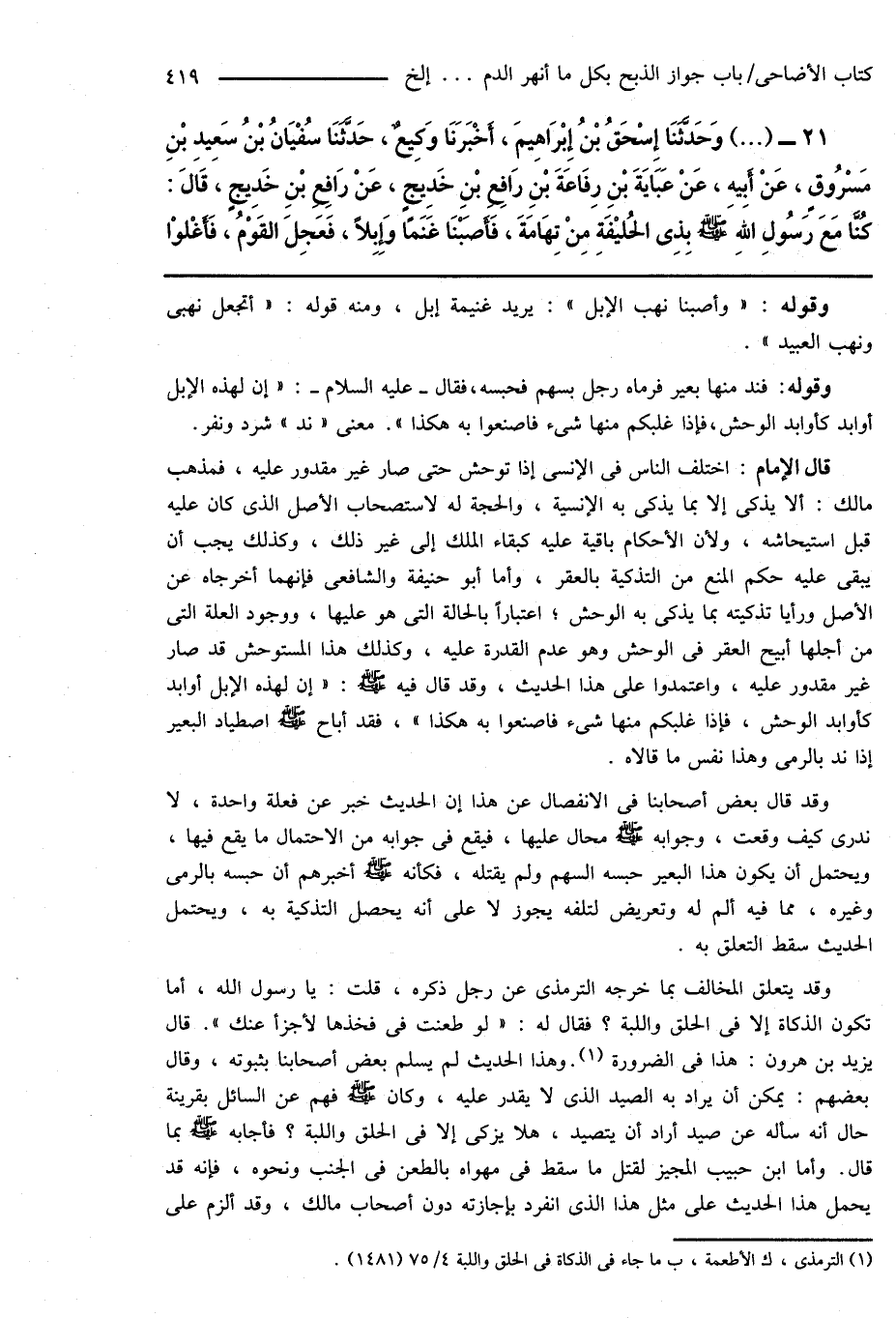 (¬1) الترمذى، ك الأطعمة، ب ما جاء فى الذكاة فى الحلق واللبة 4/ 75 (1481).