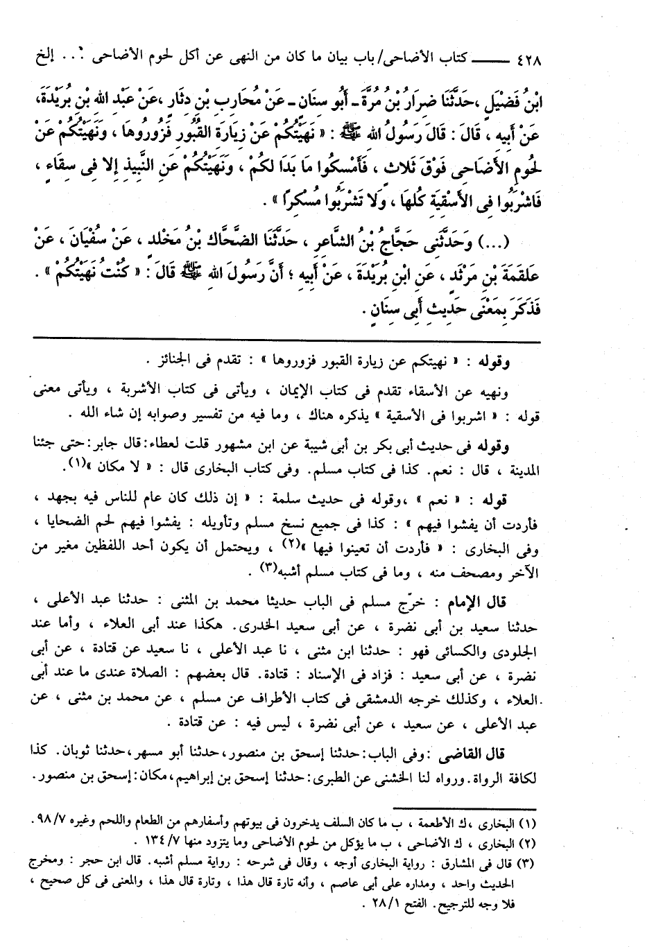 (¬2) البخارى، ك الأضاحى، ب ما يؤكل من لحوم الأضاحى وما يتزود منها 7/ 134.