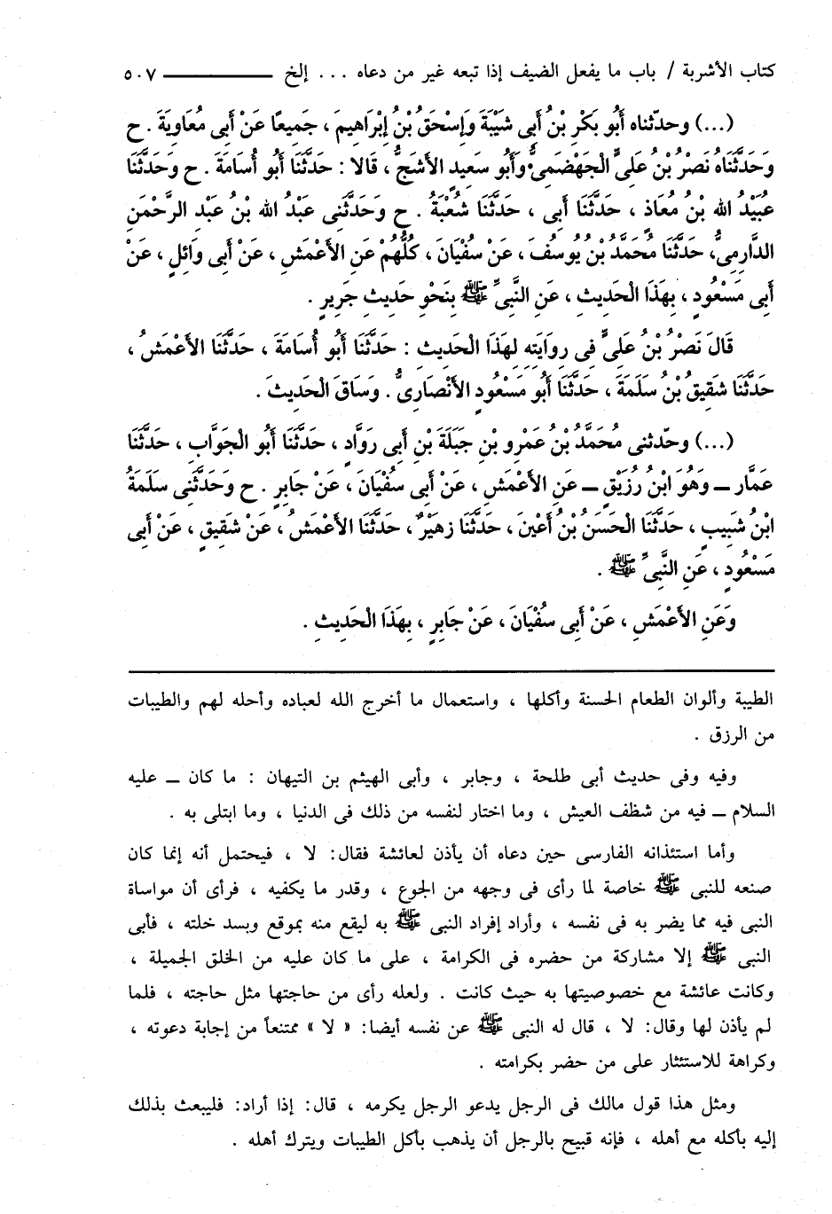 (...) وحدّثناه أَبُو بَكْرِ بْنُ أَبِى شَيْبَةَ وَإِسْحَاقُ بْنُ إِبْرَاهِيمَ، جَمِيعًا عَنْ أَبِى مُعَاوِيَةَ. ح وَحَدَّثَنَاهُ نَصْرُ بْنُ عَلِىٍّ الْجَهْضَمِىُّ وَأَبُو سَعِيدٍ الأَشَجُّ، قَالا: حَدَّثَنَا أَبُو أُسَامَةَ. ح وَحَدَّثَنَا عُبَيْدُ اللهِ بْنُ مُعَاذٍ، حَدَّثَنَا أَبِى، حَدَّثَنَا شُعْبَةُ. ح وَحَدَّثَنِى عَبْدُ اللهِ بْنُ عَبْدِ الرَّحْمَنِ الدَّارِمِىُّ، حَدَّثَنَا مُحَمَّدُ بْنُ يُوسُفَ، عَنْ سُفْيَانَ، كُلُّهُمْ عَنِ الأَعْمَشِ، عَنْ أَبِى وَائِلٍ، عَنْ أَبِى مَسْعُودٍ، بِهَذَا الْحَدِيثِ، عَنِ النَّبِىِّ صَلَّى اللهُ عَلَيْهِ وَسَلَّمَ بِنَحْوِ حَدِيثِ جَرِيرٍ.