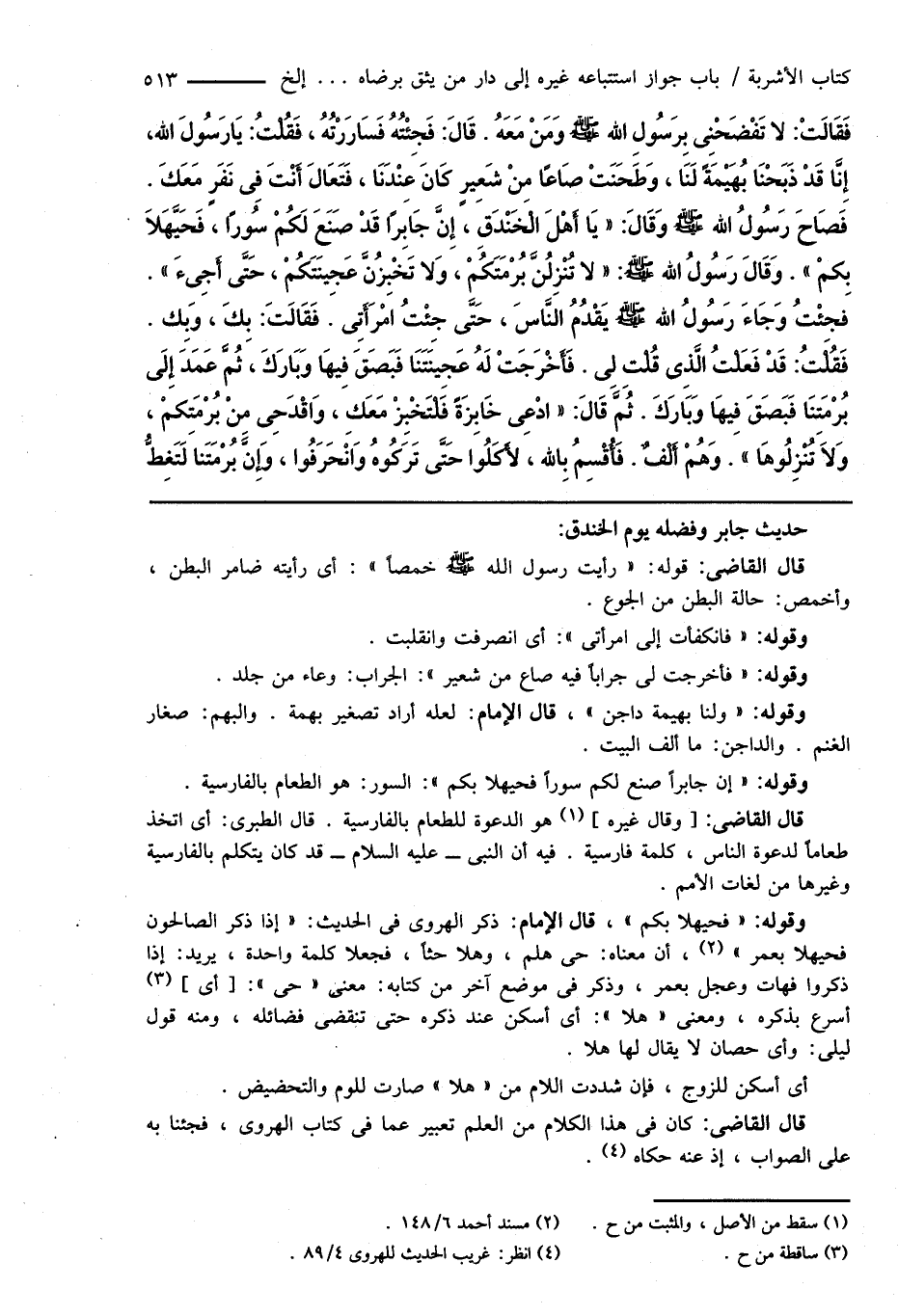 وقوله: " إن جابراً صنع لكم سوراً فحيهلا بكم ": السور: هو الطعام بالفارسية.