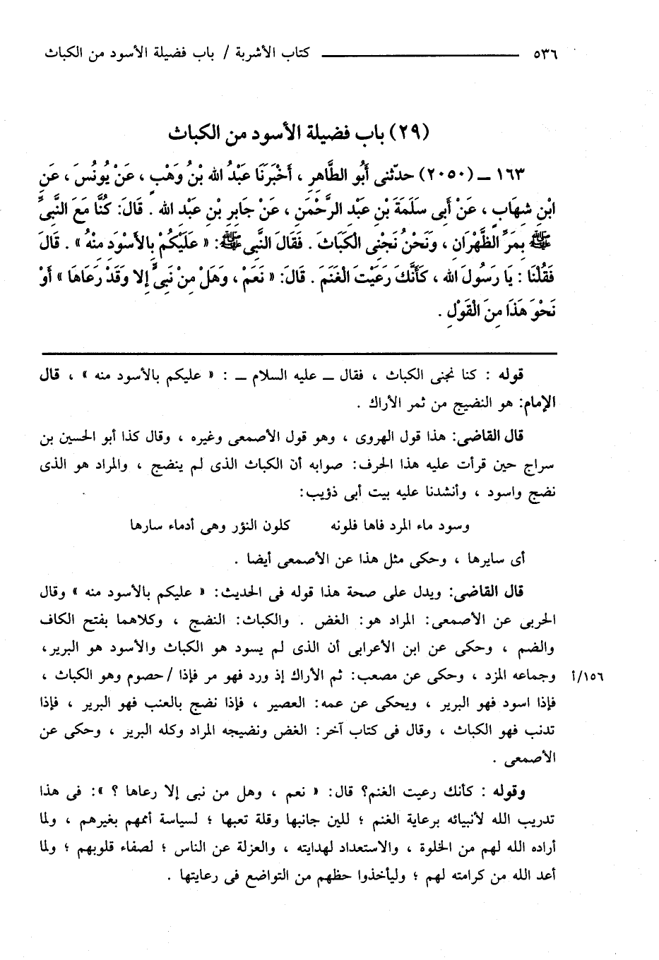 163 - (2050) حدّثنى أَبُو الطَّاهِرِ، أَخْبَرَنَا عَبْدُ اللهِ بْنُ وَهْبٍ، عَنْ يُونُسَ، عَنِ ابْنِ شِهَابٍ، عَنْ أَبِى سَلَمَةَ بْنِ عَبْدِ الرَّحْمَنِ، عَنْ جَابِرِ بْنِ عَبْدِ اللهِ قَالَ: كُنَّا مَعَ النَّبِىِّ صَلَّى اللهُ عَلَيْهِ وَسَلَّمَ بِمَرِّ الظَّهْرَانِ، وَنَحْنُ نَجْنِى الْكَبَاثَ. فَقَالَ النَّبِىُّ صَلَّى اللهُ عَلَيْهِ وَسَلَّمَ: " عَلَيْكُمْ بِالأَسْوَدِ مِنْهُ ". قَالَ فَقُلْنَا: يَا رَسُولَ اللهِ، كَأَنَّكَ رَعَيْتَ الْغَنَمَ. قَالَ: " نَعَمْ، وَهَلْ مِنْ نَبِىٍّ إِلا وَقَدْ رَعَاهَا " أَوْ نَحْوَ هَذَا مِنَ الْقَوْلِ.