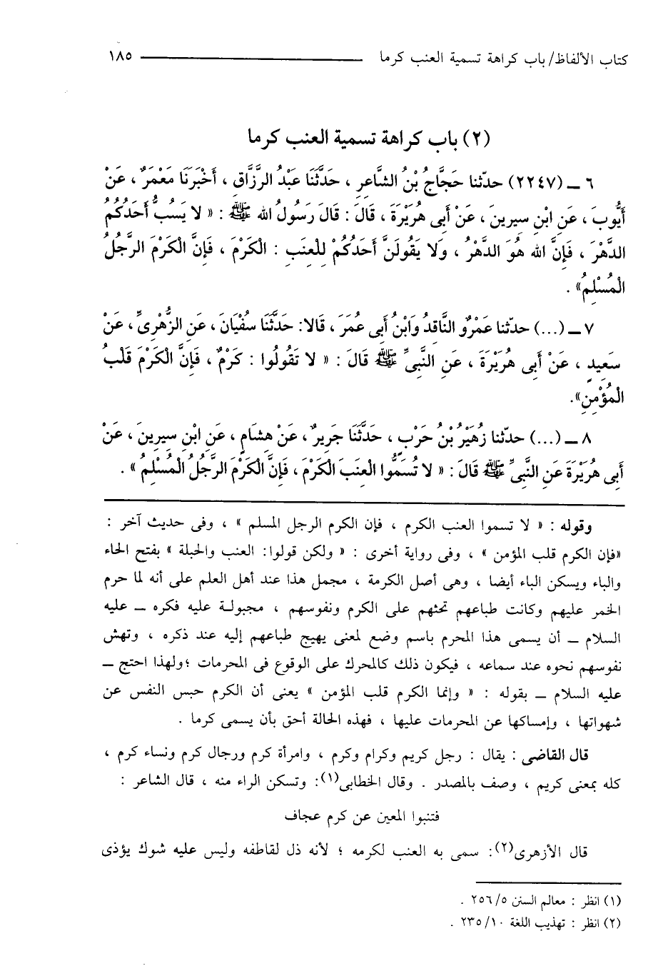 (2) باب كراهة تسمية العنب كرماً