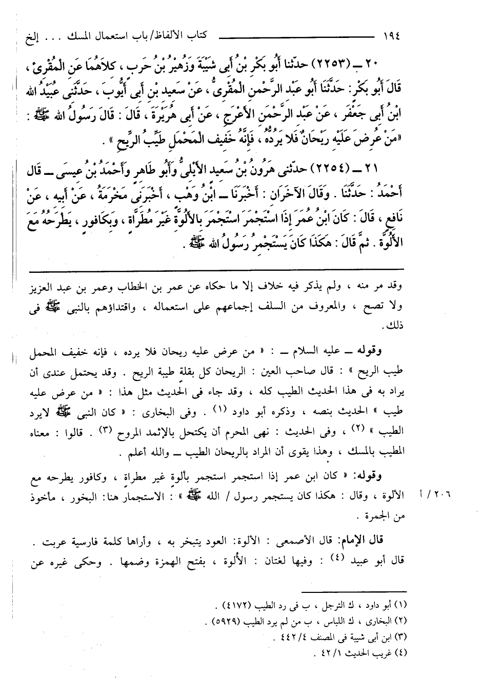 21 - (2254) حدّثنى هَارُونُ بْنُ سَعِيدٍ الأَيْلِىُّ وَأَبُو طَاهِرٍ وَأَحْمَدُ بْنُ عِيسَى - قَال أَحْمَدُ: حَدَّثَنَا. وَقَالَ الآخَرَانِ: أَخْبَرَنَا - ابنُ وَهْبٍ، أَخْبَرَنِى مَخْرَمَةُ، عَنْ أَبِيهِ، عَنْ نَافِعٍ، قَالَ: كَانَ ابْنُ عُمَرَ إِذَا اسْتَجْمَرَ اسْتَجْمَرَ بِالأَلُوَّةِ غَيْرَ مُطَرَّاةٍ، وَبِكَافورٍ، يَطْرَحُهُ مَعَ الأَلُوَّة. ثمَّ قَالَ: هَكَذَا كَانَ يَسْتَجْمِرُ رَسُولُ الله صَلَّى اللَّهُ عَلَيْهِ وَسَلَّمَ.