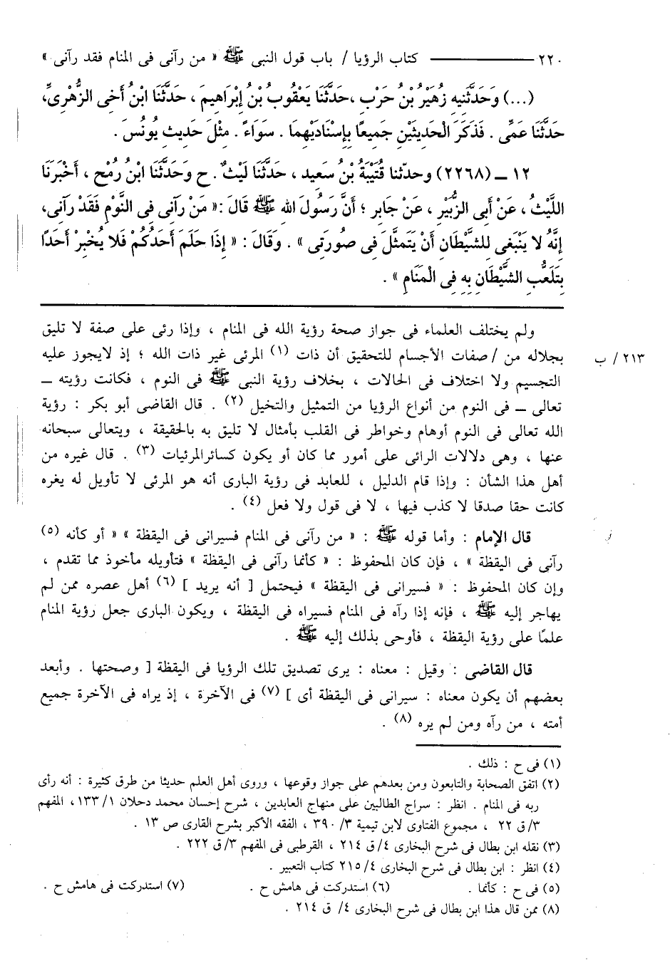 (¬4) انظر: ابن بطال فى شرح البخارى 4/ 215 كتاب التعبير.