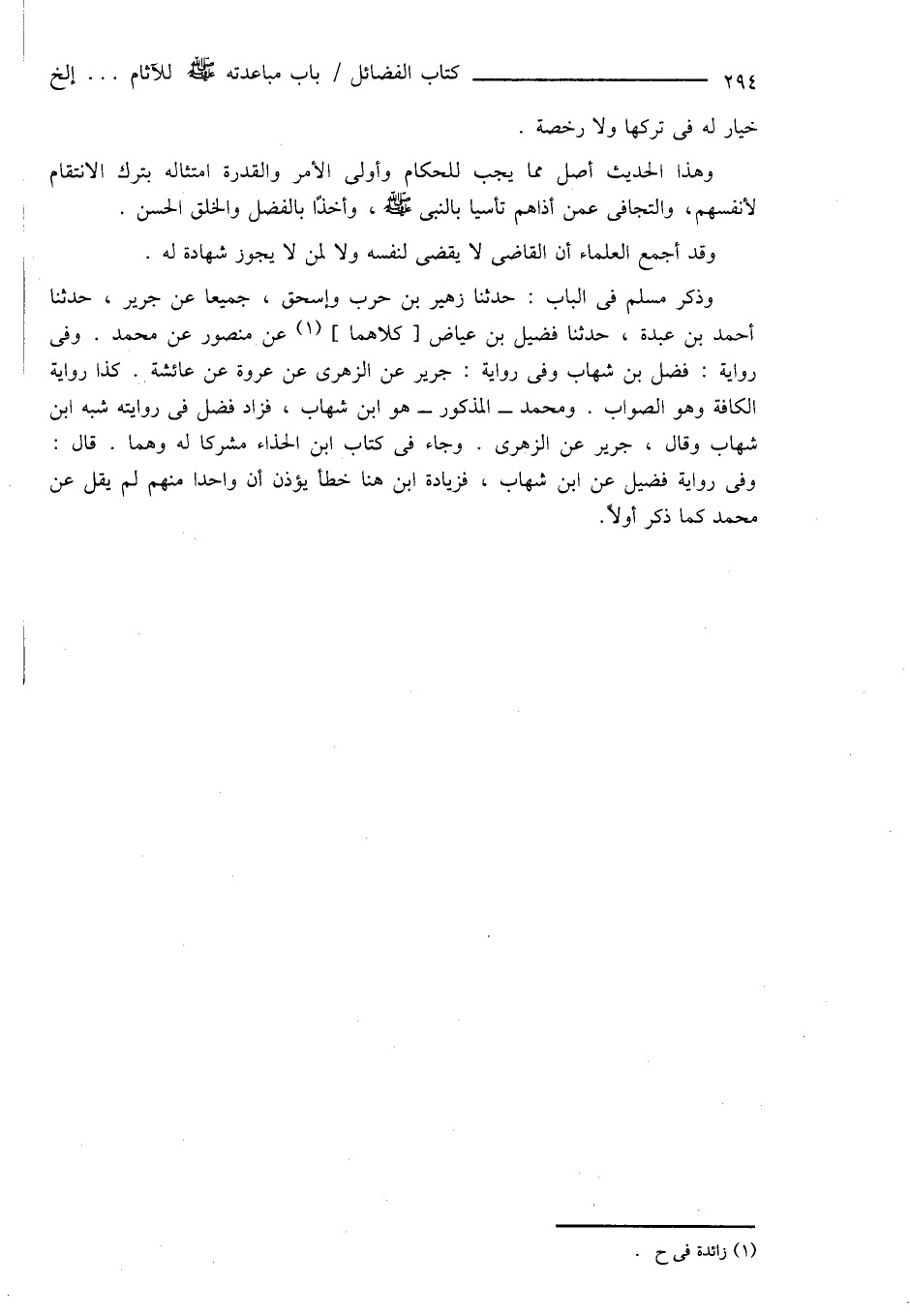 وذكر مسلم فى الباب: حدثنا زهير بن حرب وإسحاق، جميعًا عن جرير، حدثنا أحمد بن عبدة، حدثنا فضيل بن عياض [كلاهما] (¬1) عن منصور عن محمد. وفى رواية: فضل بن شهاب وفى رواية: جرير عن الزهرى عن عروة عن عائشة. كذا رواية الكافة وهو الصواب. ومحمد - المذكور - هو ابن شهاب، فزاد فضل فى روايته شبه ابن شهاب وقال، جرير عن الزهرى. وجاء فى كتاب ابن الحذاء مشركاً له وهما. قال: وفى رواية فضيل عن ابن شهاب، فزيادة ابن هنا خطأ يؤذن أن واحداً منهم لم يقل عن محمد كما ذكر أولاً.