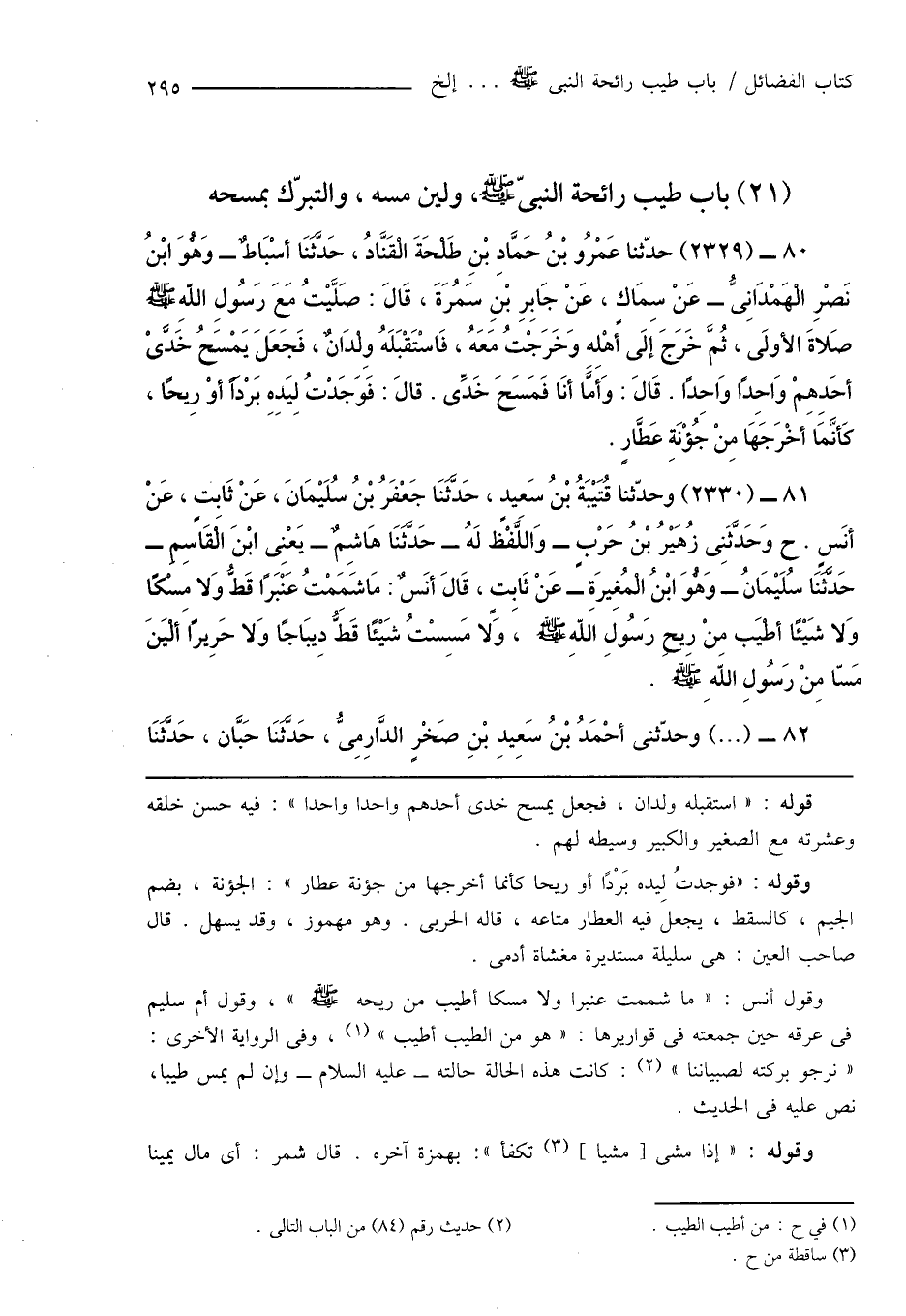 (21) باب طيب رائحة النبىّ صَلَّى اللَّهُ عَلَيْهِ وَسَلَّمَ، ولين مسه، والتبرّك بمسحه