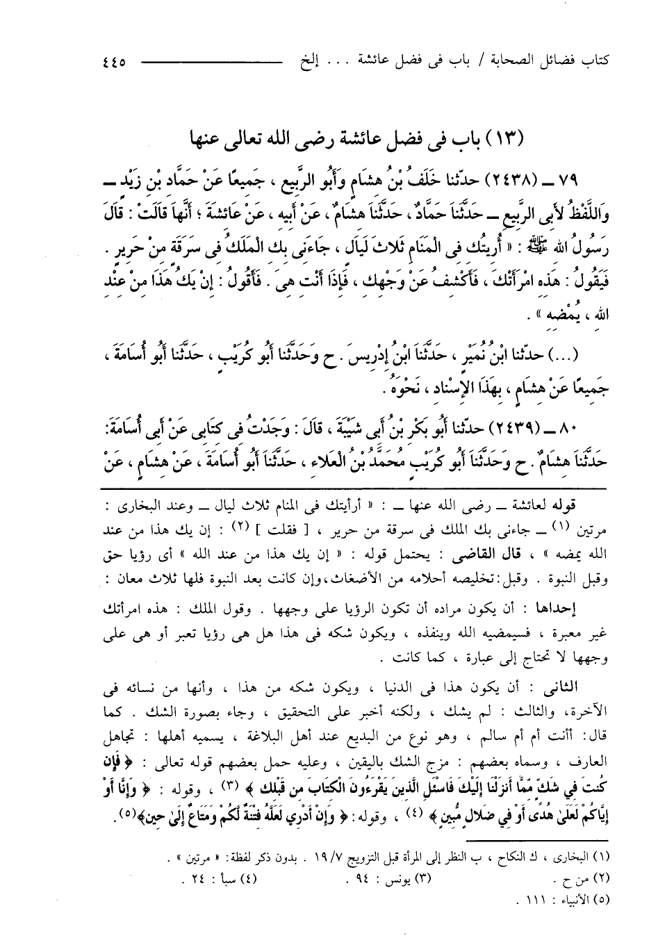 80 - (2439) حدّثنا أَبُو بَكْرِ بْنُ أَبِى شَيْبَةَ، قَالَ: وَجَدْتُ فِى كِتَابِى عَنْ أَبِى أُسَامَةَ: حَدَّثَنَا هِشَامٌ. ح وَحَدَّثَنَا أَبُو كُرَيْبٍ مُحَمَّدُ بْنُ الْعَلاءِ، حَدَّثَنَا أَبُو أُسَامَةَ، عَنْ هِشَامٍ، عَنْ