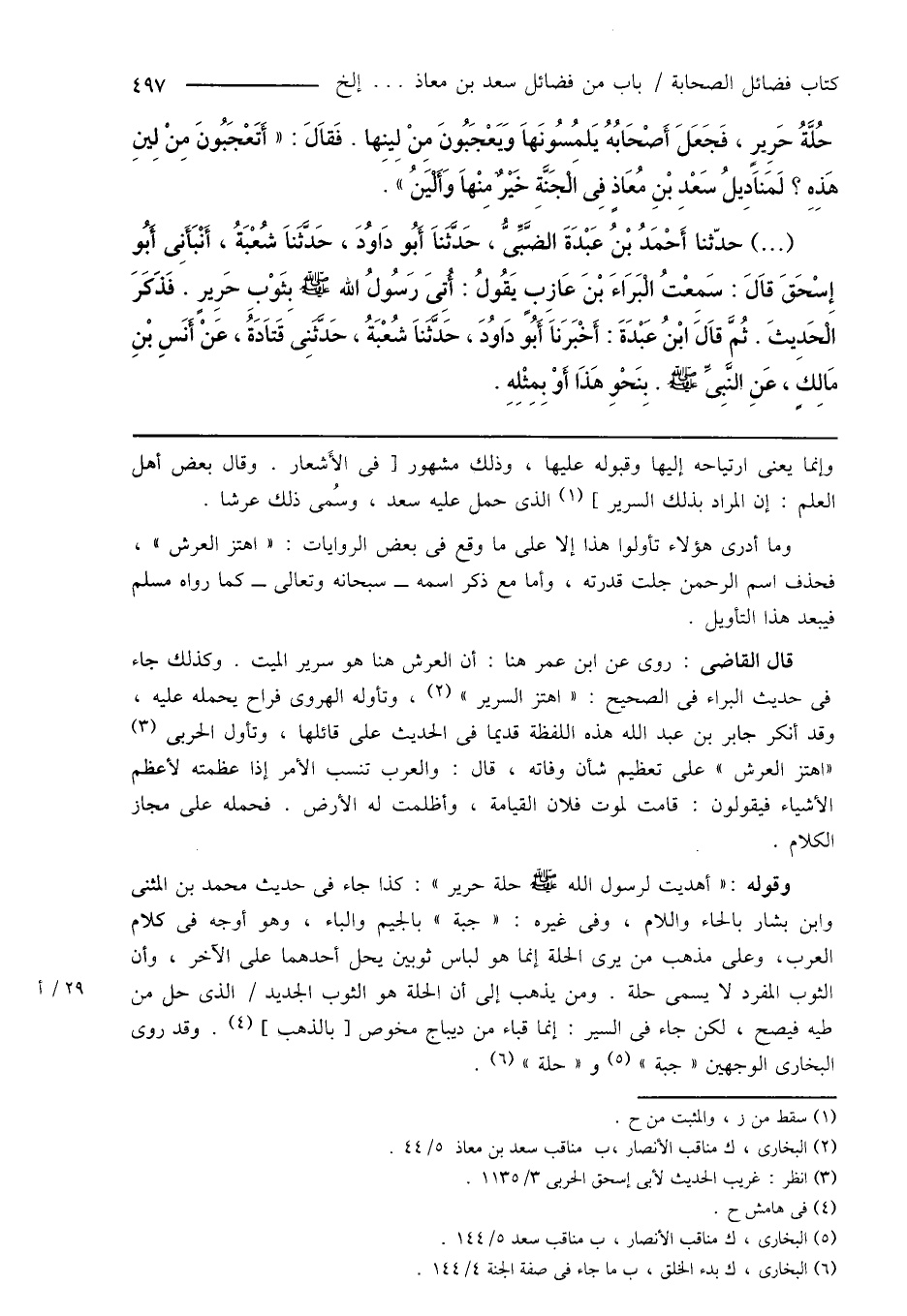 (¬2) البخارى، ك مناقب الأنصار، ب مناقب سعد بن معاذ 5/ 44.