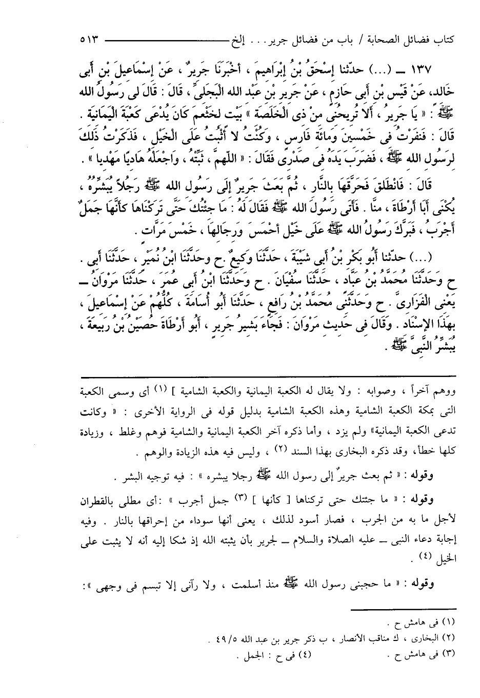 (¬2) البخارى، ك مناقب الأنصار، ب ذكر جرير بن عبد الله 5/ 49.