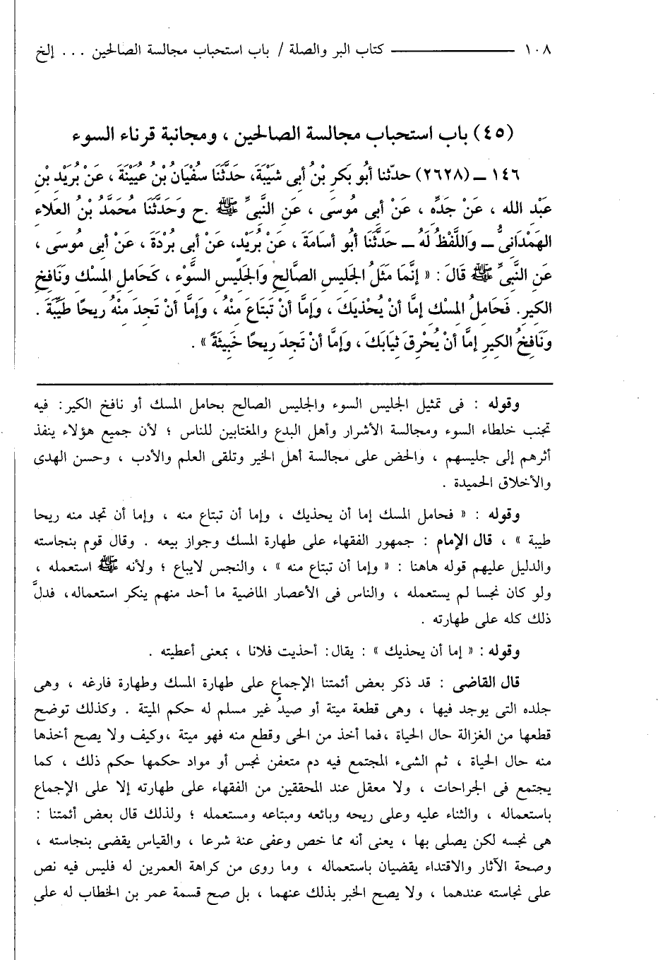 (45) بَاب اسْتِحْبَابِ مُجَالَسَةِ الصَّالِحِينَ، وَمُجَانَبَةِ قُرَنَاءِ السُّوءِ