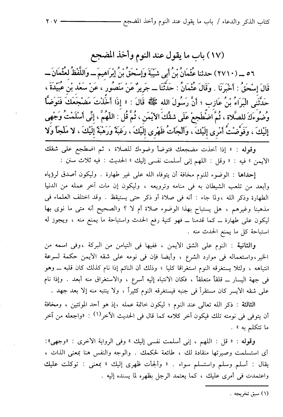 (17) باب ما يقول عند النوم وأخذ المضجع
