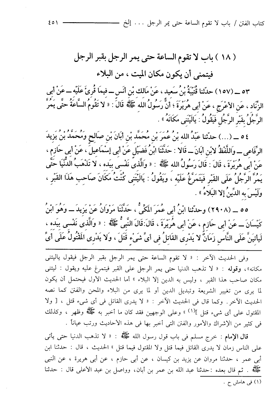 (18) باب لا تقوم الساعة حتى يمر الرجل بقبر الرجل فيتمنى أن يكون مكان الميت، من البلاء