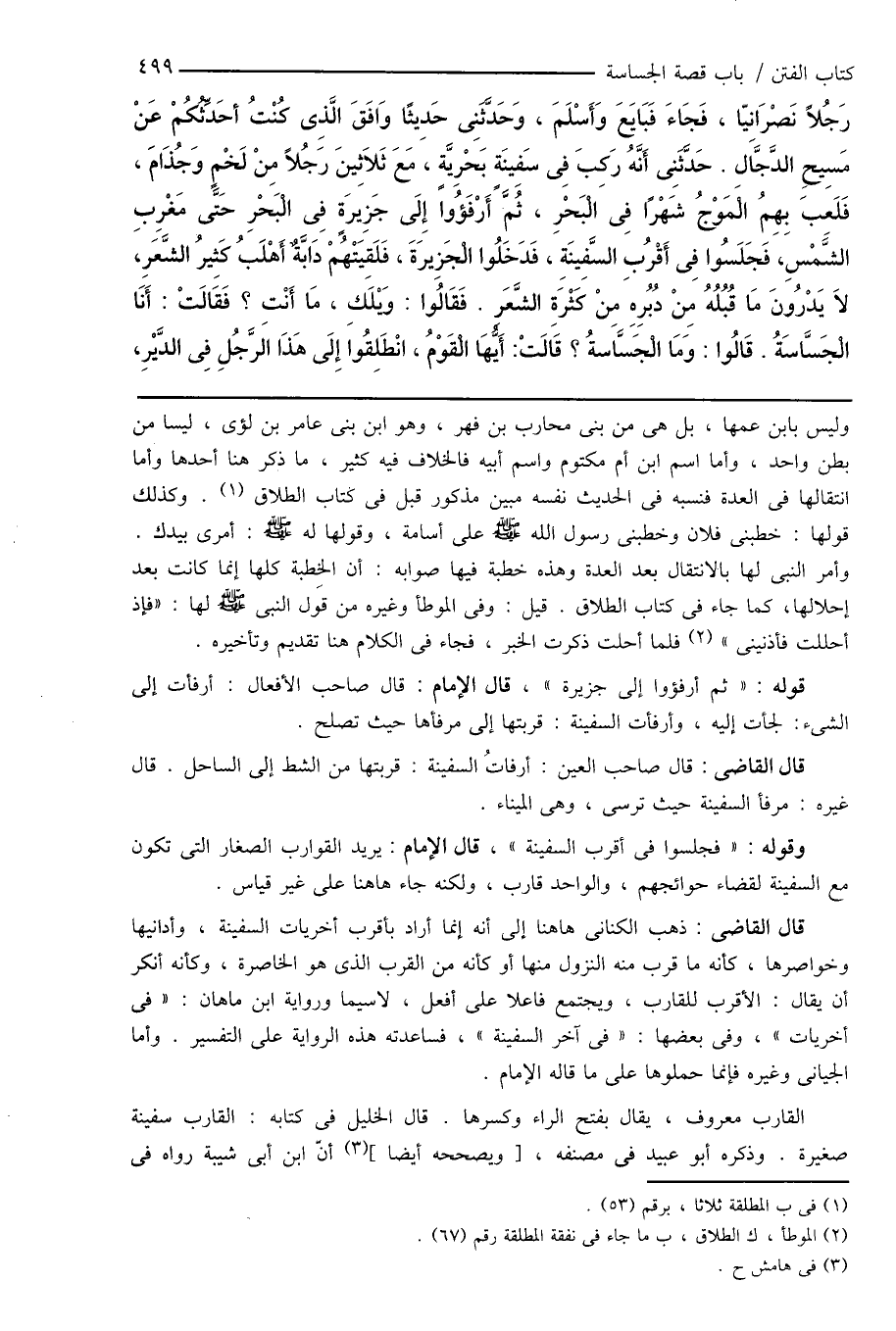وأما استئذانه الفارسى حين دعاه أن يأذن لعائشة فقال: لا، فيحتمل أنه إنما كان صنعه للنبى صَلَّى اللهُ عَلَيْهِ وَسَلَّمَ خاصة لما رأى فى وجهه من الجوع، وقدر ما يكفيه، فرأى أن مواساة النبى فيه مما يضر به فى نفسه، وأراد إفراد النبى صَلَّى اللهُ عَلَيْهِ وَسَلَّمَ به ليقع منه بموقع ويسد خلته، فأبى النبى صَلَّى اللهُ عَلَيْهِ وَسَلَّمَ إلا مشاركة من حضره فى الكرامة، على ما كان عليه من الخلق الجميلة، وكانت عائشة مع خصوصيتها به حيث كانت. ولعله رأى من حاجتها مثل حاجته، فلما لم يأذن لها وقال: لا، قال له النبى صَلَّى اللهُ عَلَيْهِ وَسَلَّمَ عن نفسه أيضاً: " لا " ممتنعاً من إجابة دعوته، وكراهة للاستئثار على من حضر بكرامته.