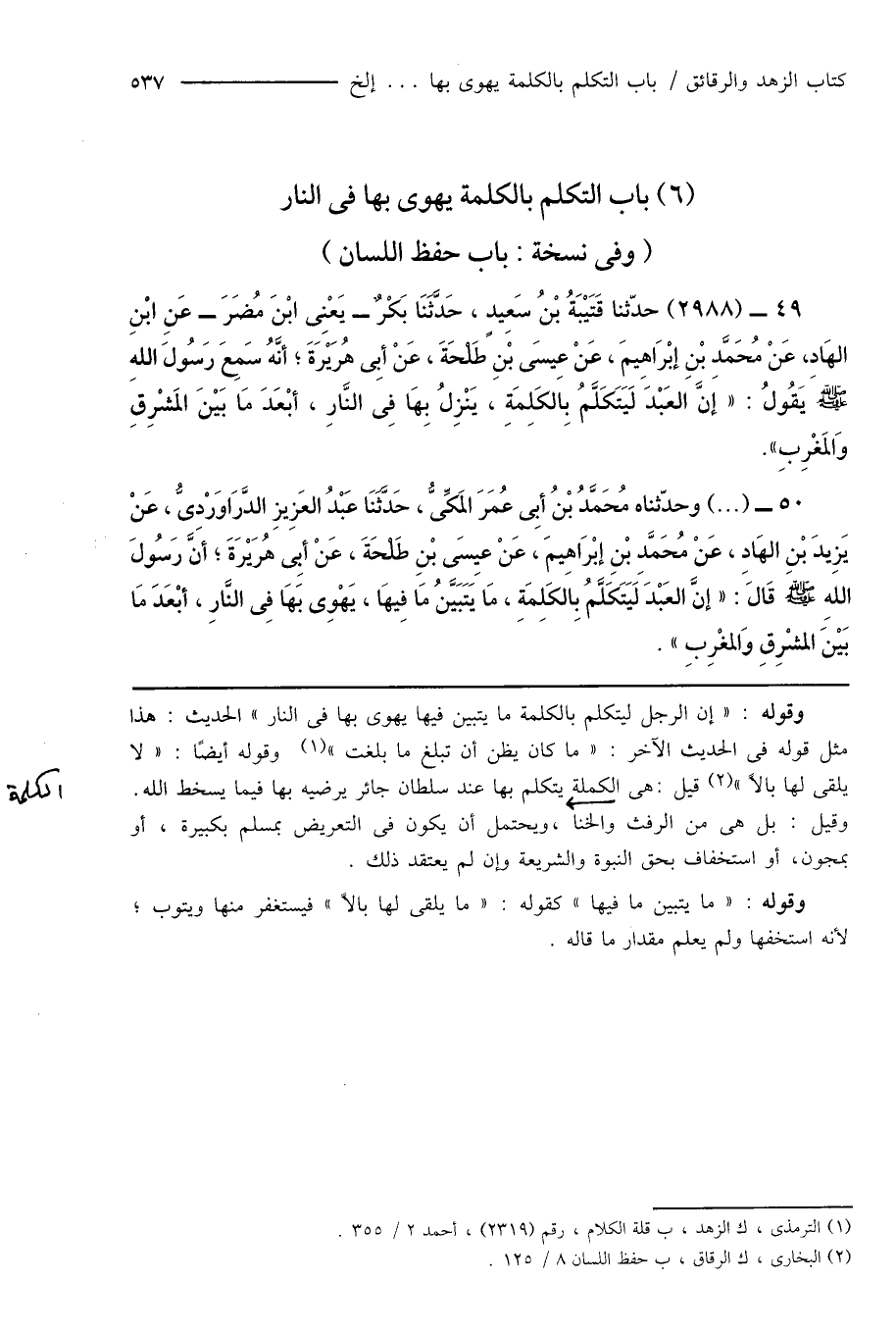 (¬2) البخارى، ك الرقاق، ب حفظ اللسان 8/ 125.