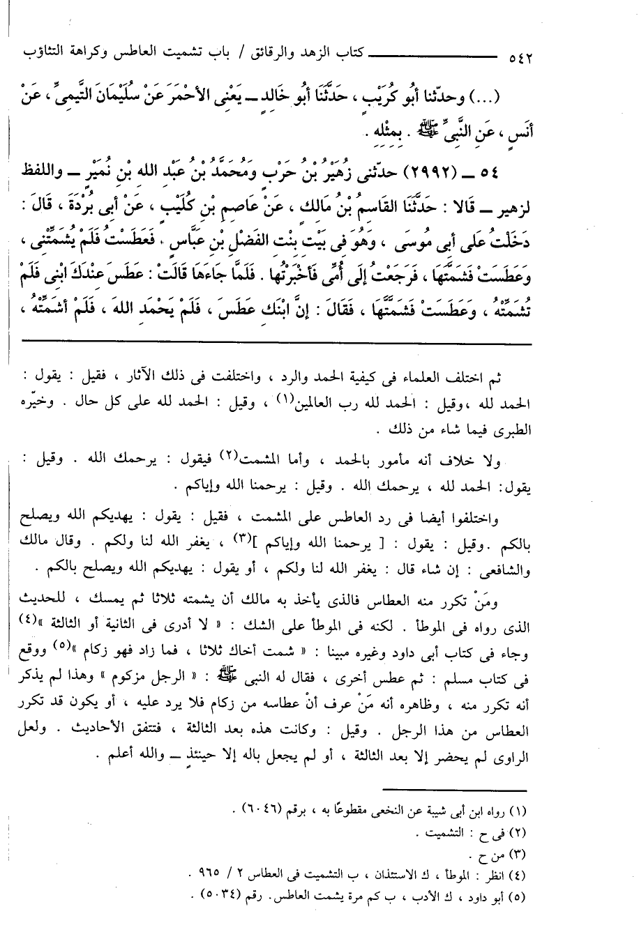 (¬5) أبو داود، ك الأدب، ب كم مرة يشمت العاطس. رقم (5034).