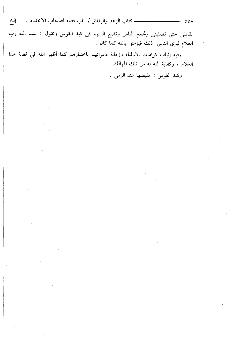 بقاتلى حتى تصلبنى وتجمع الناس وتضع السهم فى كبد القوس وتقول: بسم الله رب الغلام ليرى الناس ذلك فيؤمنوا بالله كما كان.