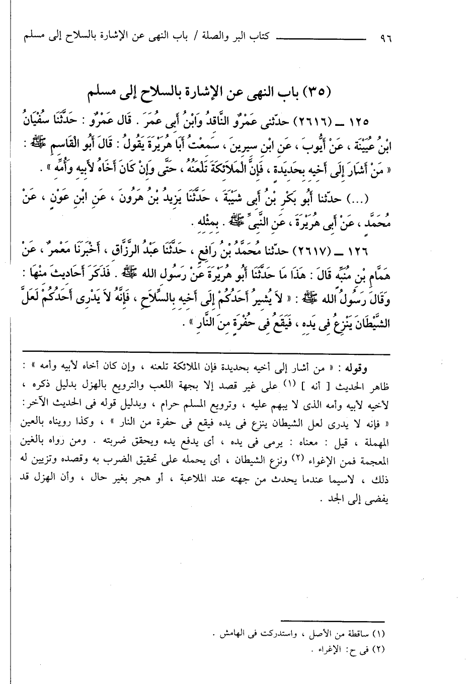 (35) بَاب النَّهْى عَنْ الْإِشَارَةِ بِالسِّلَاحِ إِلَى مُسْلِمٍ