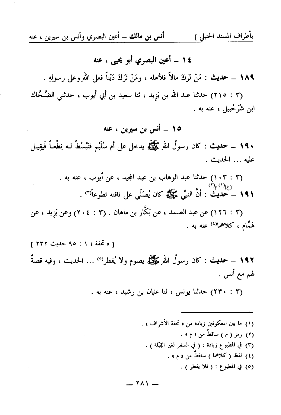 191 -[خ م] حديث أن النبي صَلَّى اللَّهُ عَلَيْهِ وَسَلَّمَ كان يصلي على ناقته تطوعا (3: 126) عن عبد الصمد عن بكار بن ماهان (3: 204) وعن يزيد عن همام كلاهما عنه به