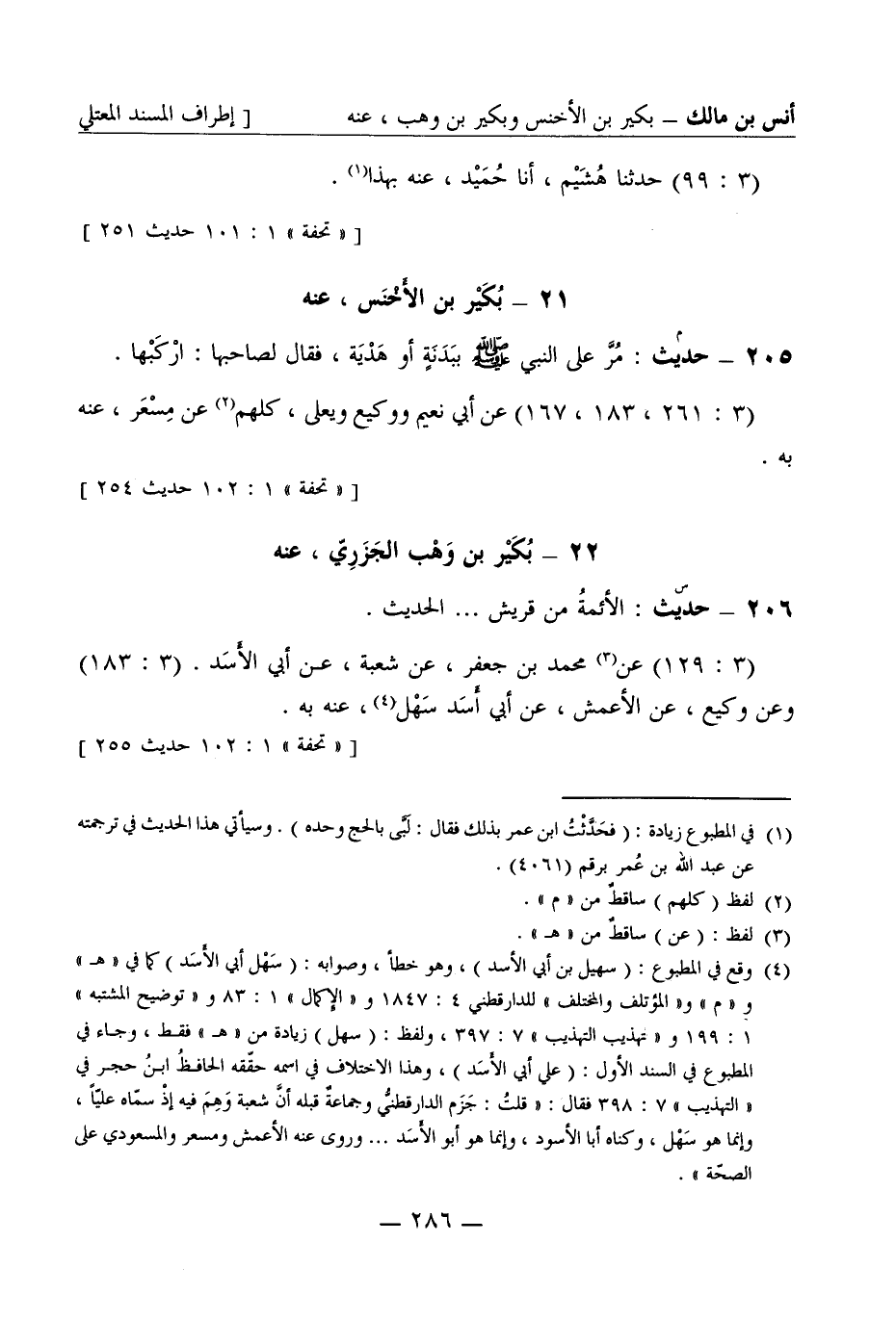 206 -[س] حديث الأئمة من قريش ... الحديث (3: 129) عن محمد بن جعفر عن شعبة عن أبي الأسد (3: 183) وعن وكيع عن الأعمش عن أبي أسد سهل عنه به