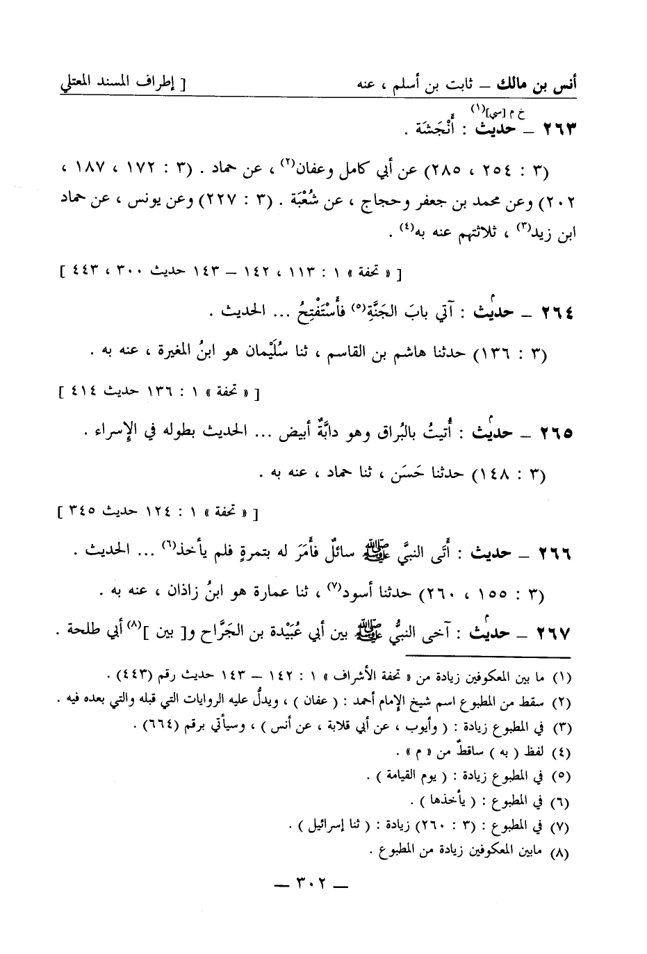265 -[م] حديث أتيت بالبراق وهو دابة أبيض ... . الحديث بطوله في الإسراء (3: 148) حدثنا حسن ثنا حماد عنه به
