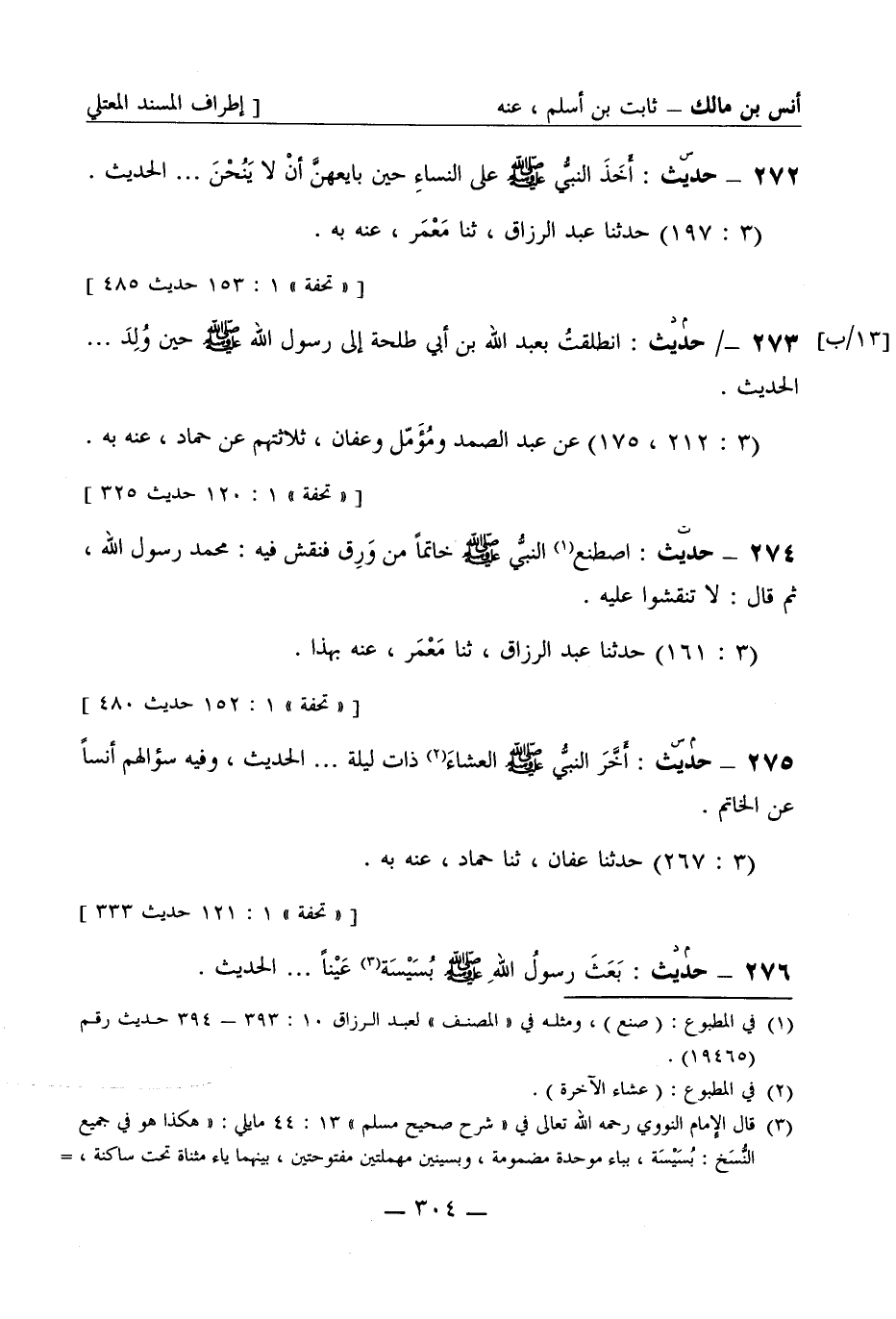 275 -[م س] حديث أخر النبي صَلَّى اللَّهُ عَلَيْهِ وَسَلَّمَ العشاء ذات ليلة ... . الحديث وفيه سؤالهم أنسا عن الخاتم (3: 267) حدثنا عفان ثنا حماد عنه به