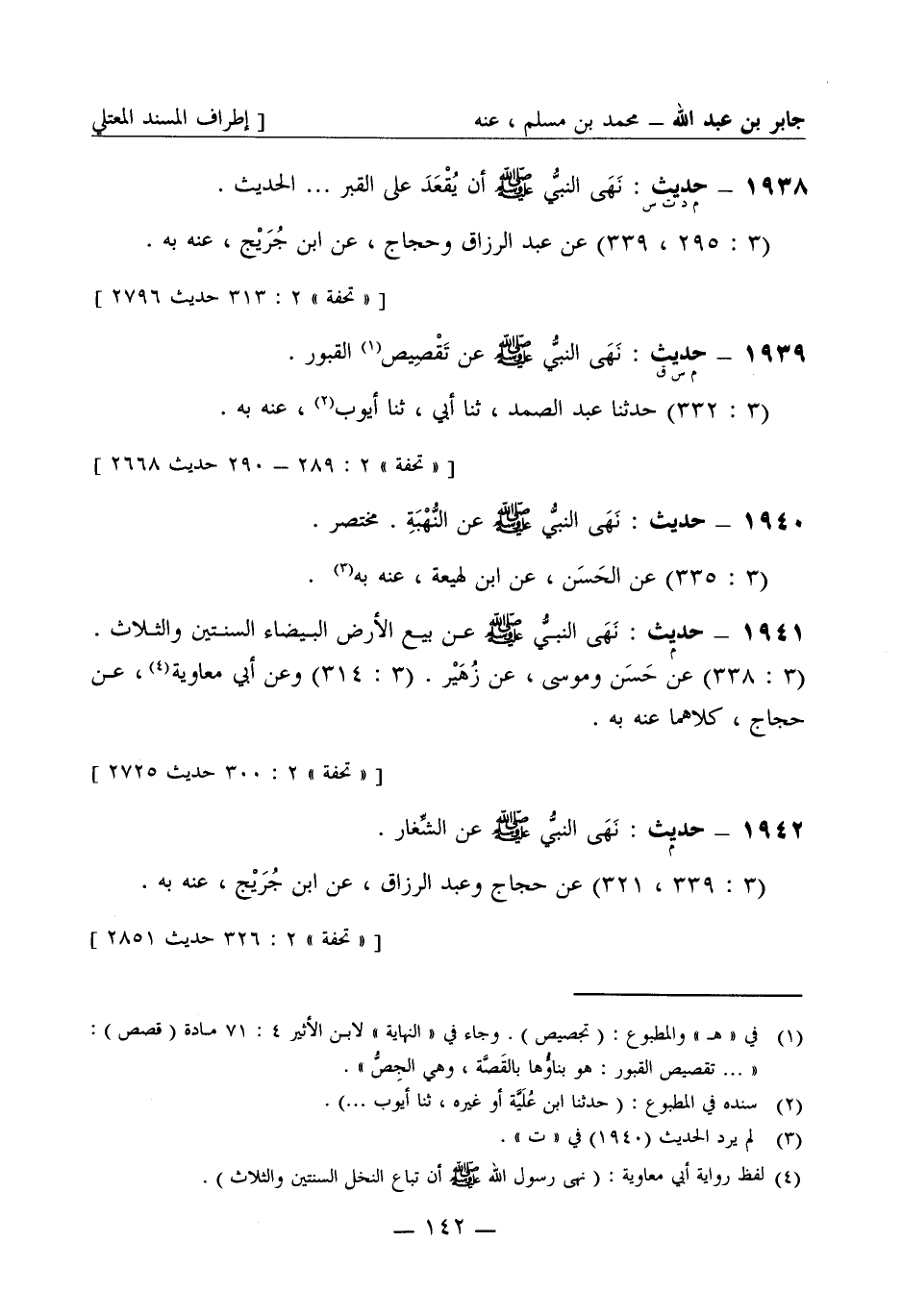 1941 -[م] حديث: نهى النبي صَلَّى اللَّهُ عَلَيْهِ وَسَلَّمَ عن بيع الأرض البيضاء السنتين والثلاث (3: 338) عن حسن وموسى عن زهير (3: 314) وعن أبي معاوية عن حجاج كلاهما عنه به