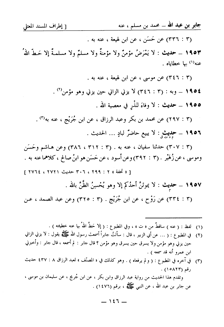 1957 -[م] حديث: لا يموتن أحدكم إلا وهو يحسن الظن بالله (3: 334) عن روح عن ابن جريج (3: 325) وعن عبد الصمد عن -[147]- مهدي عن واصل (3: 390) وعن النضر بن إسماعيل عن ابن أبي ليلى كلهم عنه به