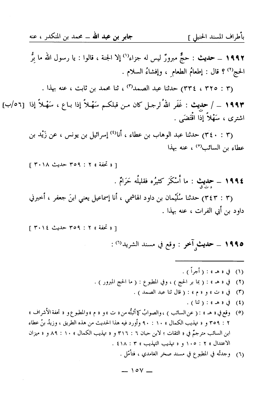 1992 - حديث: حج مبرور ليس له جزاء إلا الجنة قالوا: يا رسول الله ما بر الحج؟ قال: إطعام الطعام وإفشاء السلام (3: 325، 334) حدثنا عبد الصمد ثنا محمد بن ثابت عنه بهذا