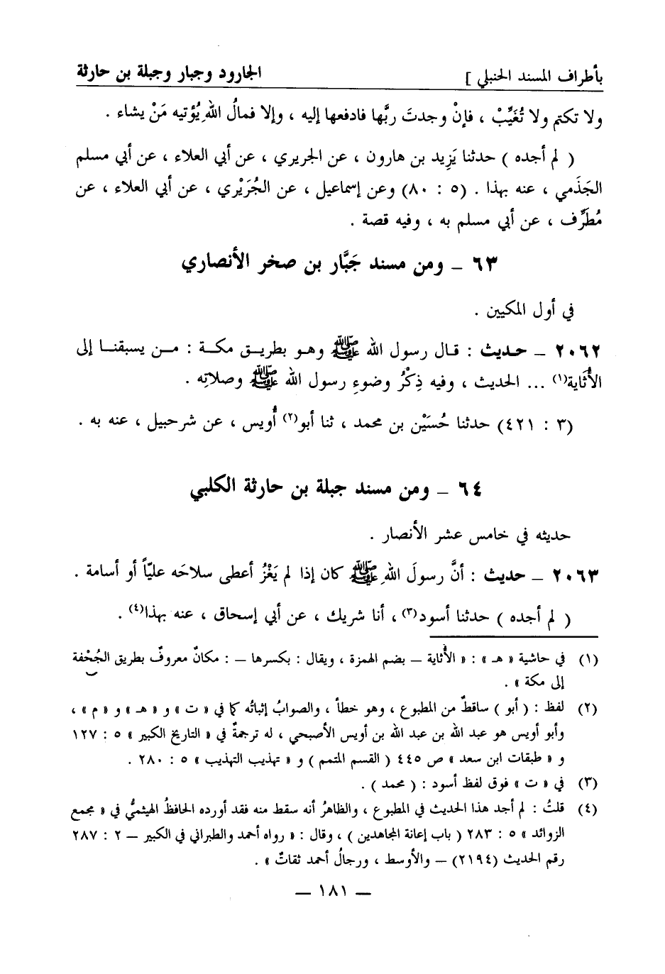ومن مسند جبلة بن حارثة الكلبي حديثه في خامس عشر الأنصار