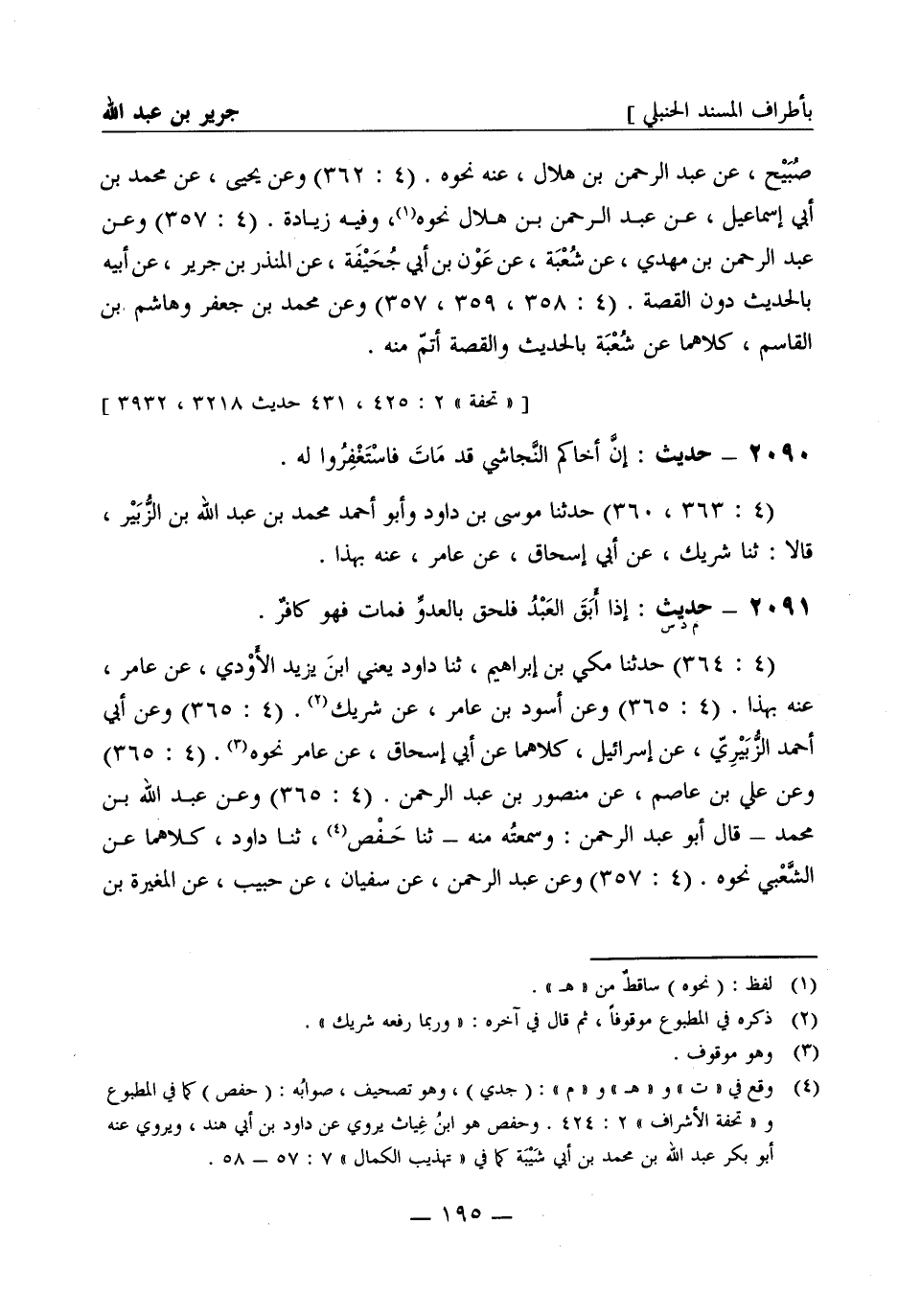 2090 - حديث: إن أخاكم النجاشي قد مات فاستغفروا له (4: 363، 360) حدثنا موسى بن داود وأبو أحمد محمد بن عبد الله بن الزبير قالا: ثنا شريك عن أبي إسحاق عن عامر عنه بهذا