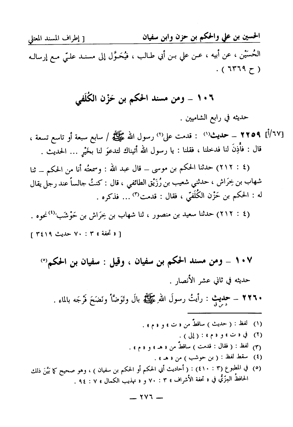 ومن مسند الحكم بن حزن الكلفي حديثه في رابع الشاميين